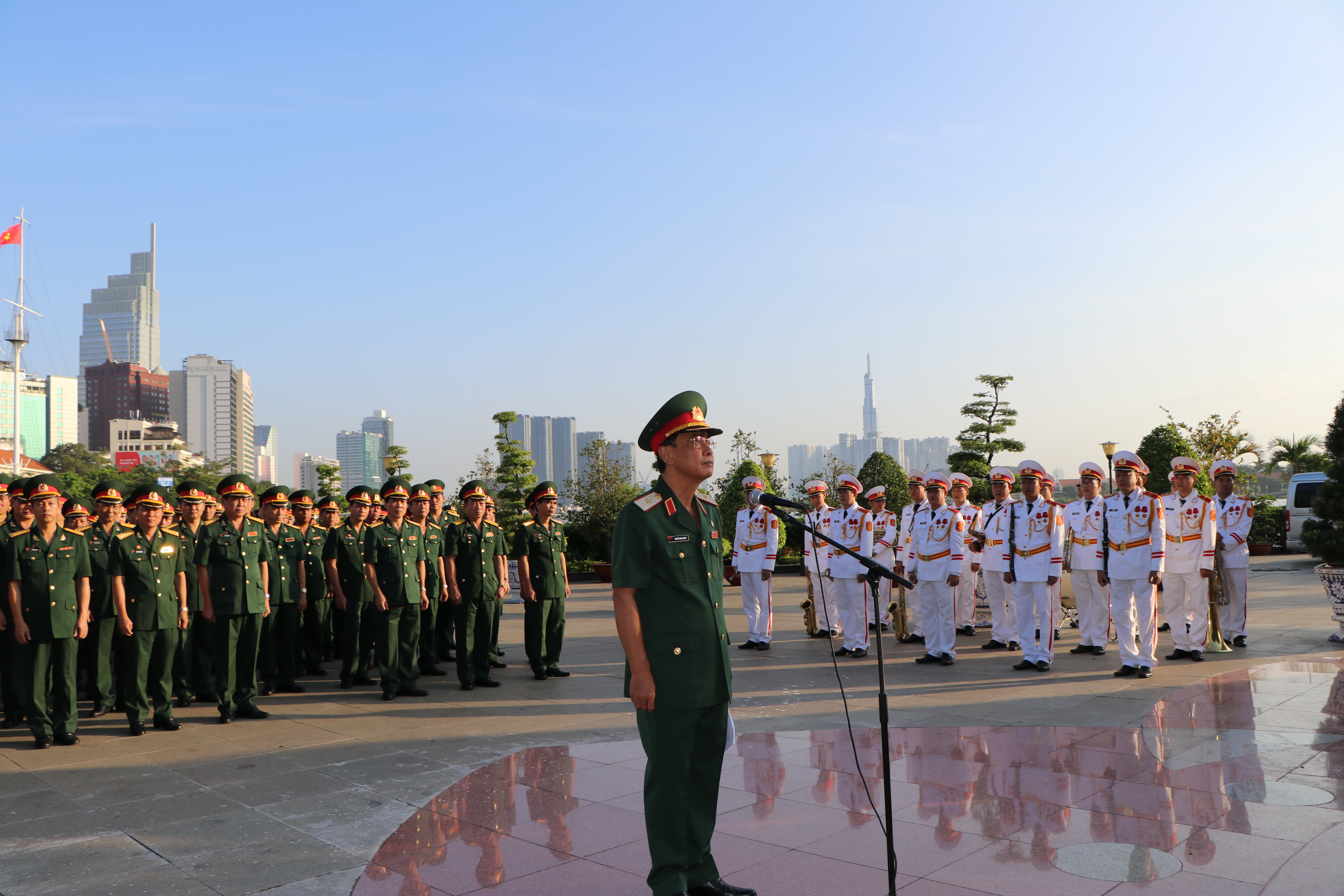 Các đại biểu chụp hình trước tượng đài Chủ tịch Hồ Chí Minh tại Bến Nhà Rồng - Thành phố Hồ Chí Minh