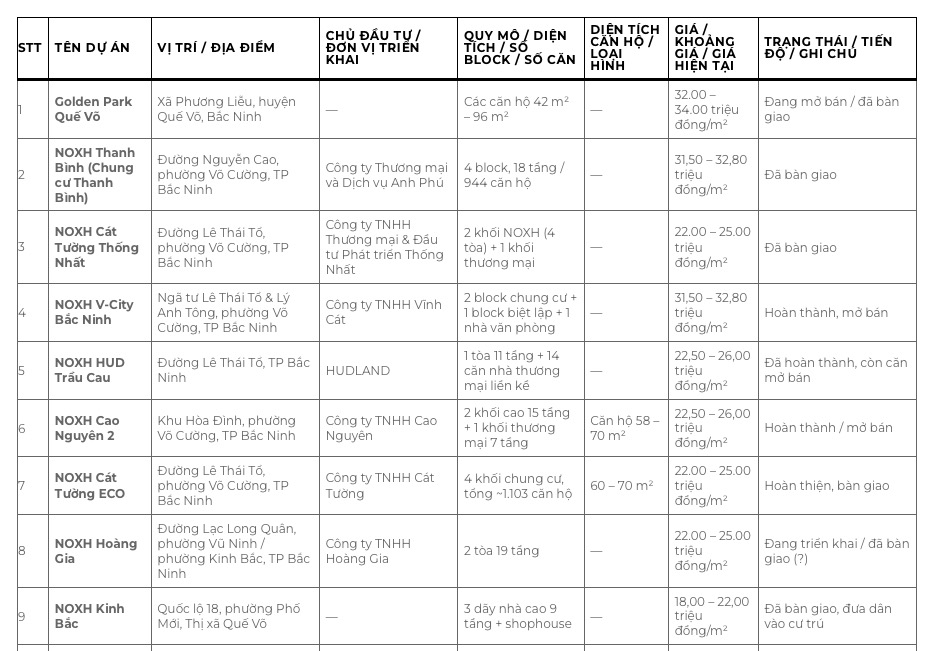 Danh sách dự án Nhà ở Xã hội Bắc Ninh mới nhất 2025
