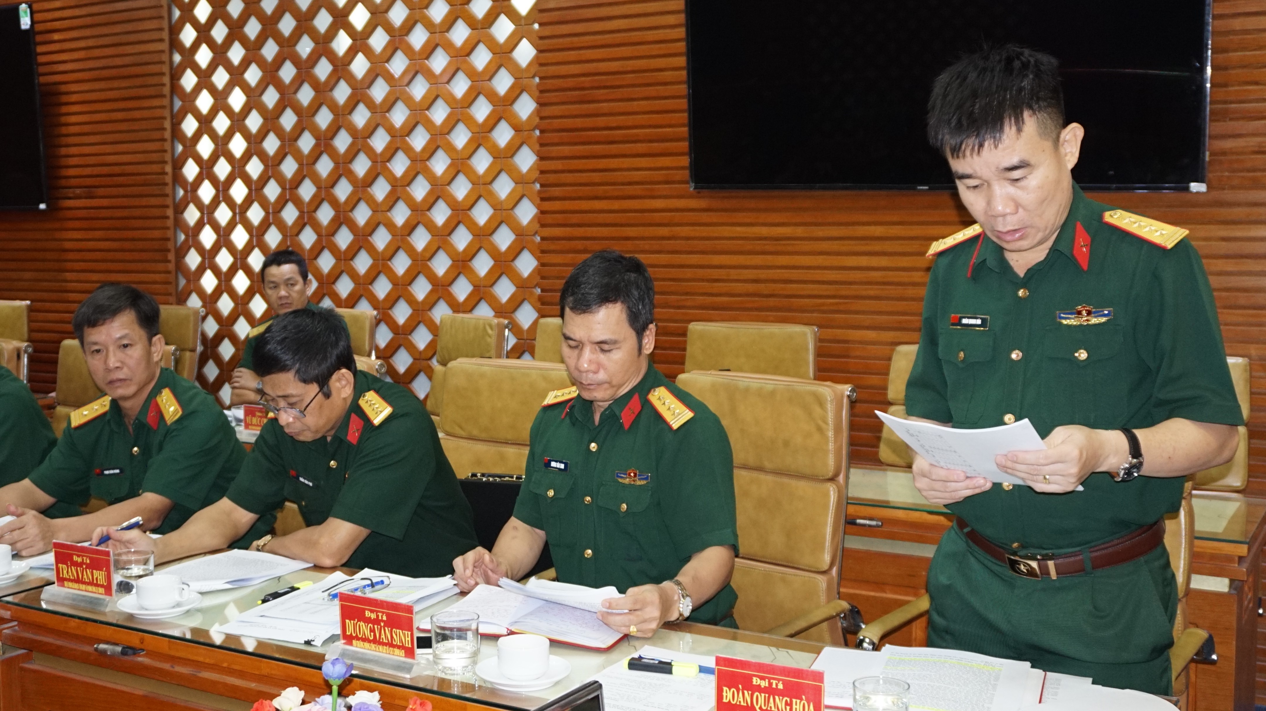 Đại tá Đoàn Quang Hòa, Phó Cục trưởng Cục Chính sách trưởng đoàn kiểm tra phát biểu