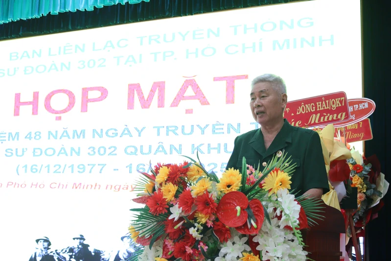 Đại tá Nguyễn Văn Kiền, Trưởng Ban Liên lạc truyền thống Sư đoàn 302 tại TPHCM phát biểu tại buổi họp mặt.
