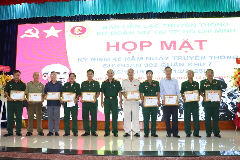 (QK7 Online) - Sáng 14/12, tại Công ty Cổ phần Dệt may 7, Ban Liên lạc truyền thống Sư đoàn 302 tại TPHCM tổ chức họp mặt kỷ niệm 48 năm Ngày truyền thống Sư đoàn 302 (16/12/1977 - 16/12/2025). Dự họp mặt có Thiếu tướng Trần Ngọc Minh, Phó Tư lệnh Quân khu 7.