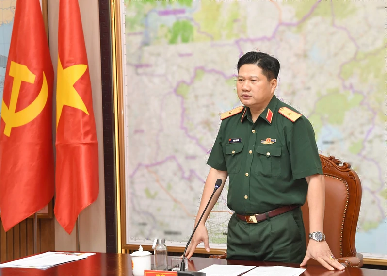 Thiếu tướng Phạm Anh Tuấn, Ủy viên Ban Thường vụ Đảng ủy Quân khu, Chủ nhiệm Chính trị Quân khu chủ trì hội nghị.