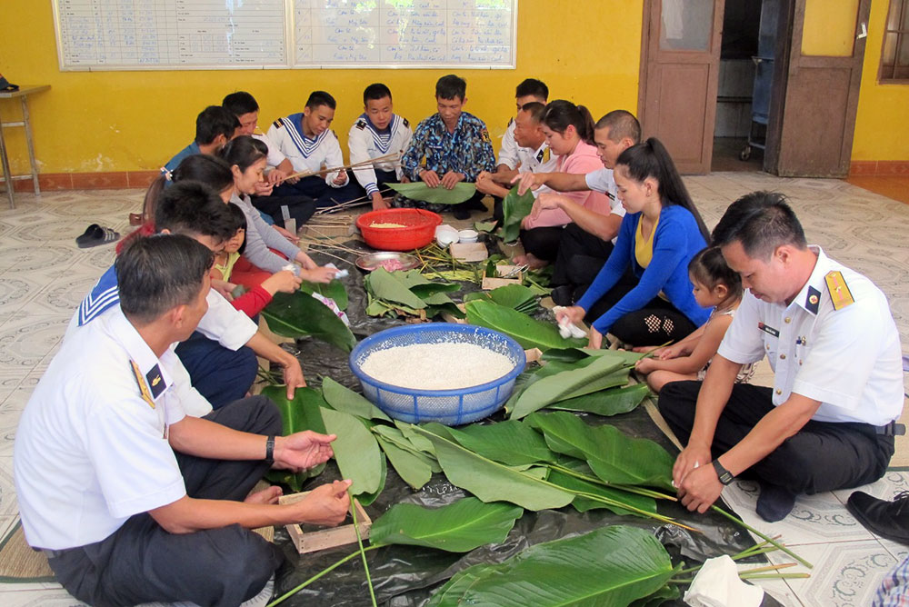 Nhiều phần quà từ đất liền gửi ra cũng nhanh chóng được chuyển lên đảo. Những cây quất, hoa giấy, hoa lan kiên cường với gió biển suốt mấy ngày qua vẫn tươi sắc, đem hơi thở mùa xuân đến với quân dân trên đảo. Khắp đảo tràn ngập trong sắc màu của mùa xuân. Cánh lính trẻ í ới gọi nhau cùng mổ gà, mổ heo, bày mâm ngũ quả. Đặc biệt, ai cũng có ước muốn được tự tay mình gói bánh chưng chuẩn bị cho mâm cỗ đêm giao thừa. Không cần khuôn mẫu, chỉ với bàn tay khéo léo, tỉ mỉ và nhanh nhẹn của bộ đội, hơn 3 tiếng đồng hồ, hàng chục bánh chưng vuông vức đã hoàn thành…