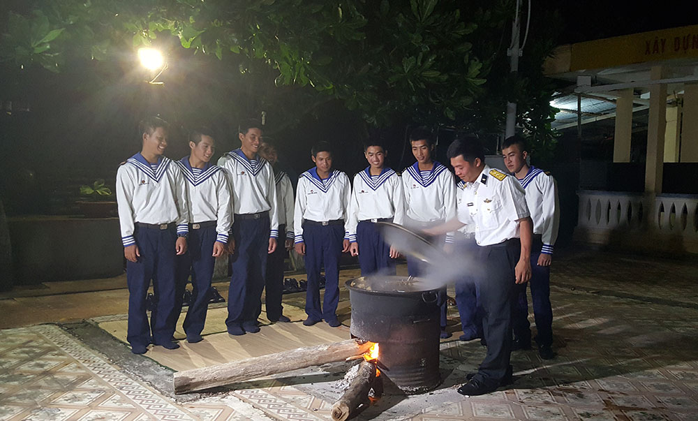 Lần đầu được đón tết nơi đầu sóng ngọn gió, chiến sĩ Lê Hoàng Bảo (đảo Đá Lớn A) không khỏi bùi ngùi, chất chứa nhiều cảm xúc. “Dù lần đầu tiên em đón tết xa gia đình nhưng được sự quan tâm của thủ trưởng, đồng đội cũng như không khí tết nơi đây làm em vơi đi nỗi nhớ nhà, nhớ bạn bè, tết ở đất liền. Ở đây, tết cũng có hoa, các món ăn ngày tết và đặc biệt được nấu bánh chưng làm em nhớ những ngày còn ở nhà được cùng với gia đình ngồi bên bếp lửa hồng nấu bánh chưng ngày 30 tết. Năm mới, em mong ba mẹ trong đất liền giữ gìn sức khỏe, an tâm vui xuân, đón tết” - chiến sĩ Thao cho biết.