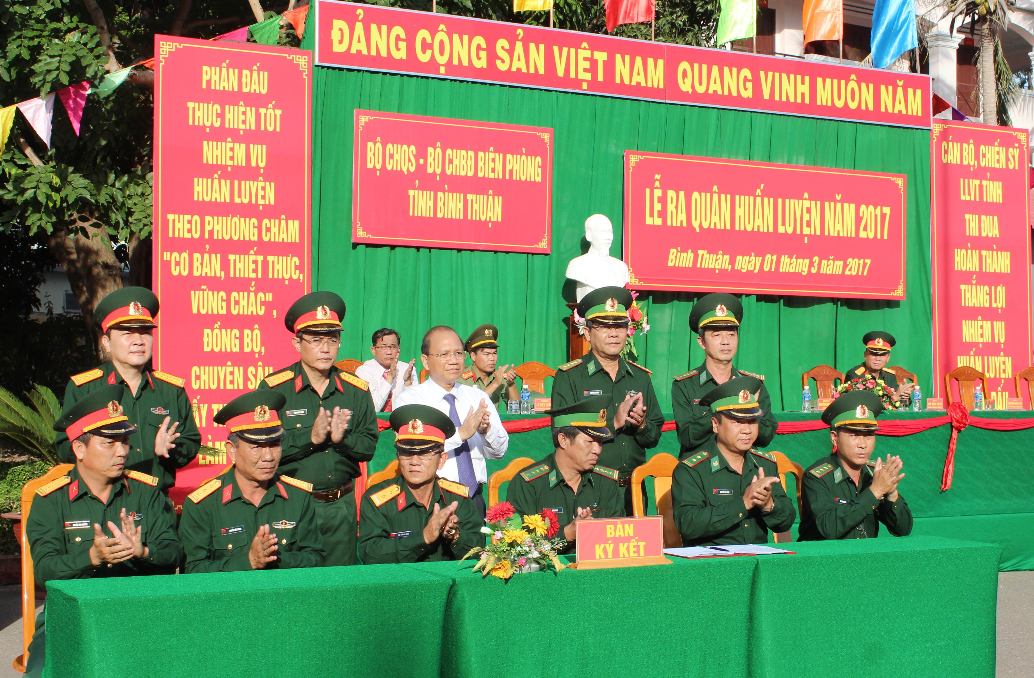 (QK7 Online) - Sáng 1/3, Bộ CHQS và Bộ Chỉ huy Bộ đội Biên phòng tỉnh Bình Thuận tổ chức lễ ra quân huấn luyện năm 2017. Đồng chí Nguyễn Mạnh Hùng, Ủy viên Trung ương Đảng, Bí thư Tỉnh ủy, Chủ tịch HĐND tỉnh dự và phát biểu chỉ đạo về nhiệm vụ huấn luyện của 2 đơn vị. Đại diện Bộ Tham mưu Quân khu 7, lãnh đạo các sở, ban ngành, đoàn thể của tỉnh, chỉ huy các cơ quan, đơn vị LLVT đóng quân trên địa bàn tỉnh đến dự.