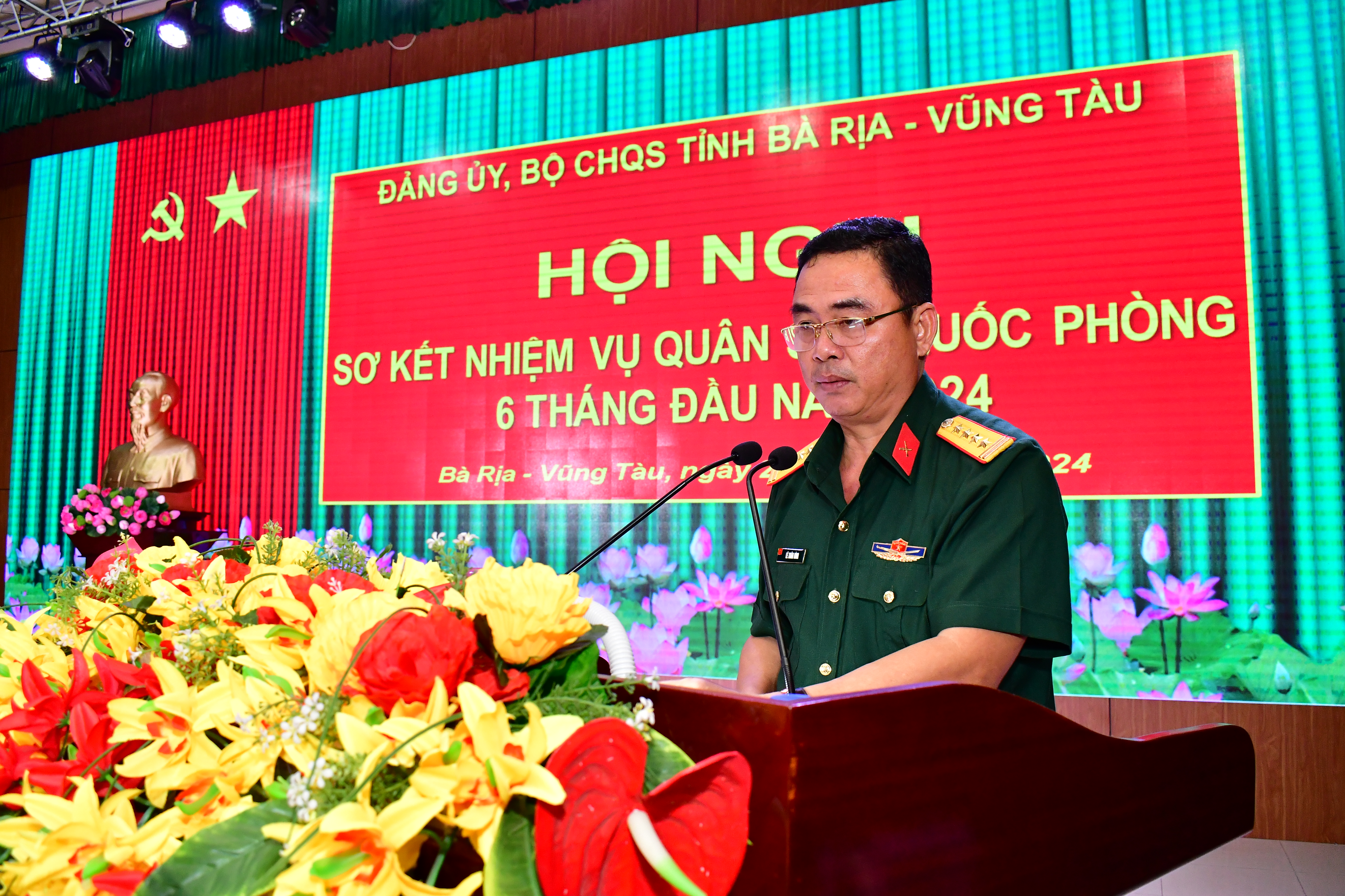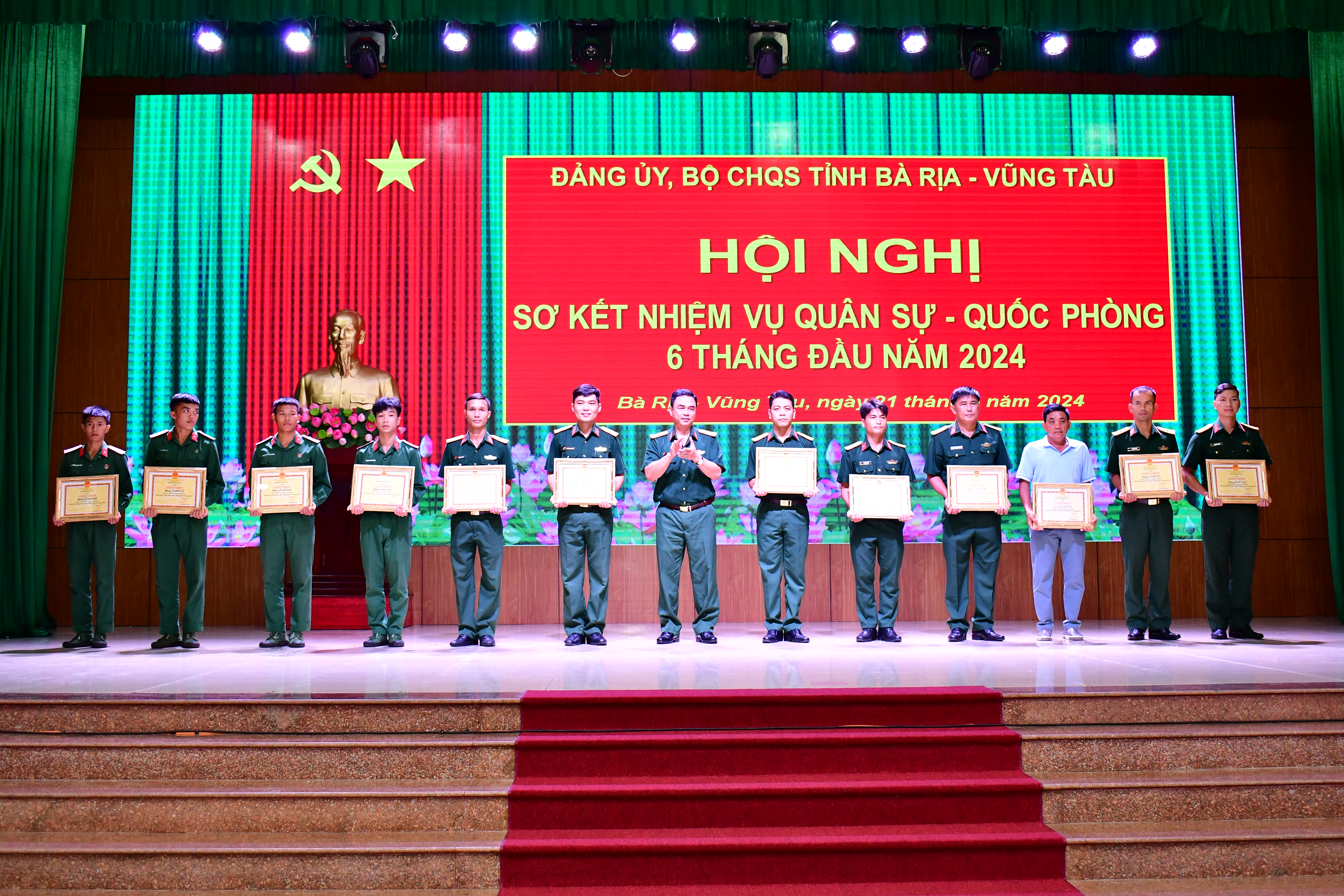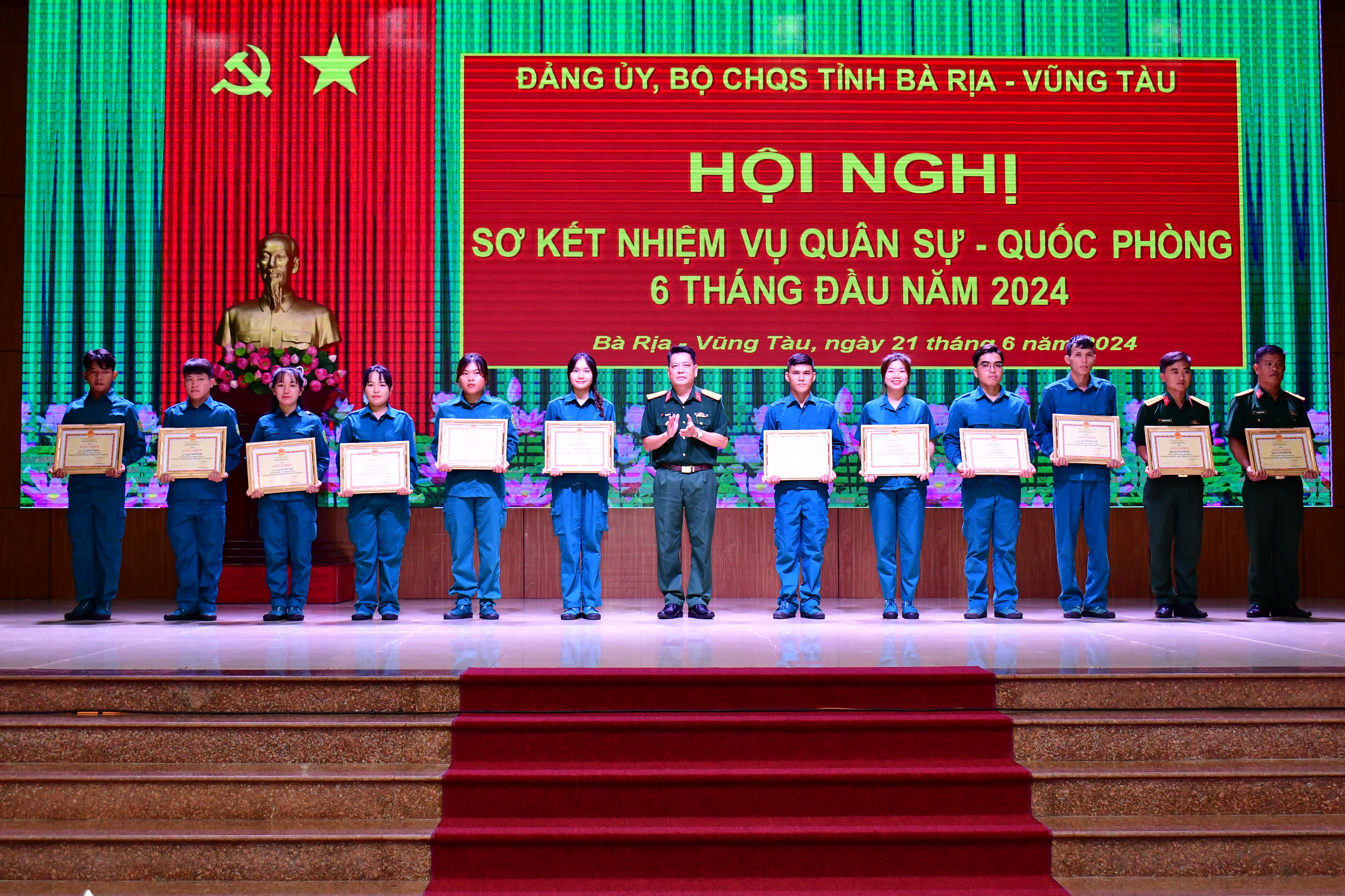 6 tháng đầu năm 2024, Đảng ủy, Bộ CHQS tỉnh Bà Rịa – Vũng Tàu đã lãnh đạo, chỉ đạo các cơ quan, đơn vị tổng kết nhiệm vụ năm 2023; triển khai nghị quyết, kế hoạch thực hiện nhiệm vụ năm 2024 đồng bộ trên các mặt công tác. Nổi bật là chỉ đạo các cơ quan, đơn vị giải quyết cho 378 quân nhân hoàn thành nghĩa vụ quân sự (NVQS) xuất ngũ và đón quân nhân xuất ngũ về địa phương chu đáo, nghĩa tình. Tham mưu Hội đồng NVQS tỉnh tổ chức giao 1.504 công dân (có 4 công dân nữ) đạt 100% so với chỉ tiêu; trong đó có 25 đảng viên (22 đảng viên chính thức) đạt 1,46% so với chỉ tiêu giao. Tổ chức thành công Đại hội Thi đua Quyết thắng giai đoạn 2019-2024 làm điểm cho toàn quân và Quân khu; tham gia hội thi, hội thao đạt kết quả cao.