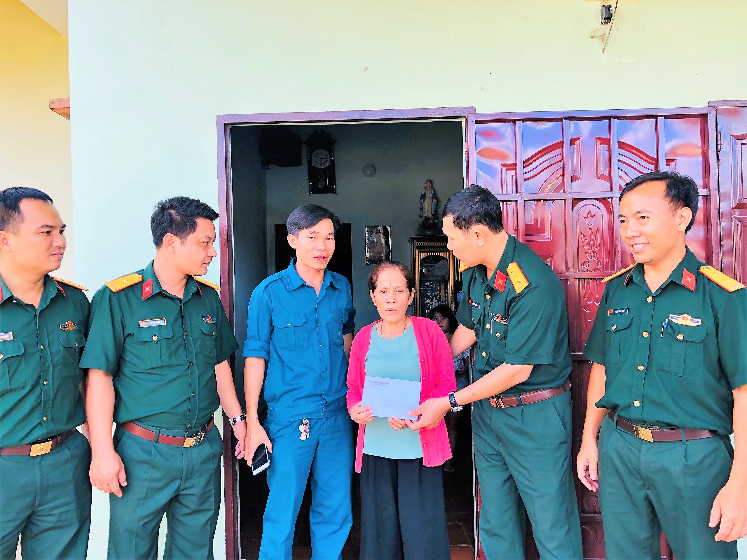 Tại những nơi đến thăm, Thượng tá Trần Văn Chung và đoàn công tác thăm, động viên và tặng mỗi gia đình 1 suất quà trị giá 1 triệu đồng.