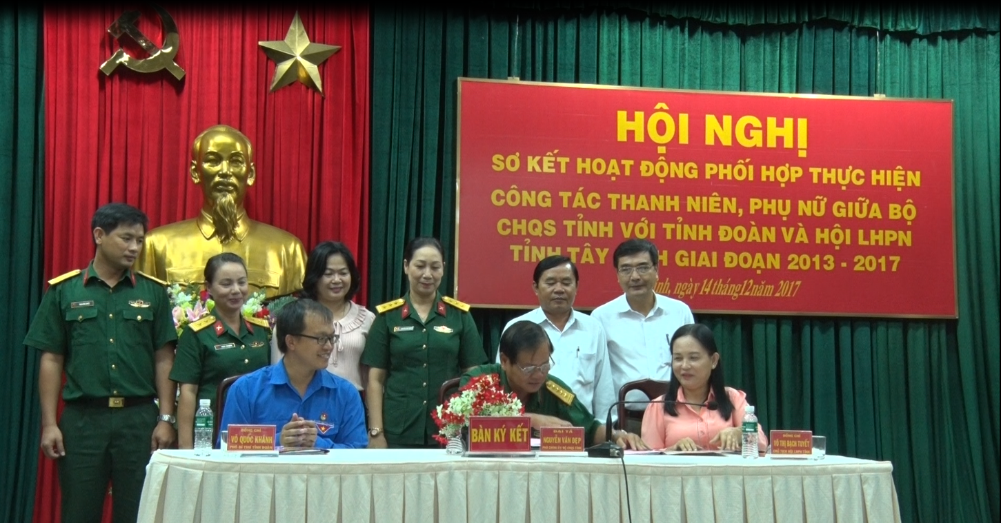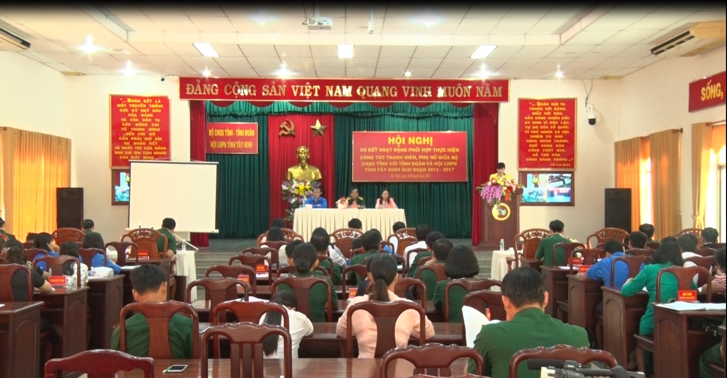 (QK7 Online) - Ngày 14/12/2017, Bộ Chỉ huy quân sự tỉnh Tây Ninh phối hợp với Tỉnh đoàn và Hội Liên hiệp phụ nữ tỉnh tổ chức Hội nghị sơ kết 5 năm phối hợp hoạt động công tác thanh niên, phụ nữ giai đoạn 2013 – 2017, nhằm đánh giá những kết quả đạt được trong 5 năm qua, đồng thời thông qua chương trình phối hợp hoạt động trong thời gian tới.