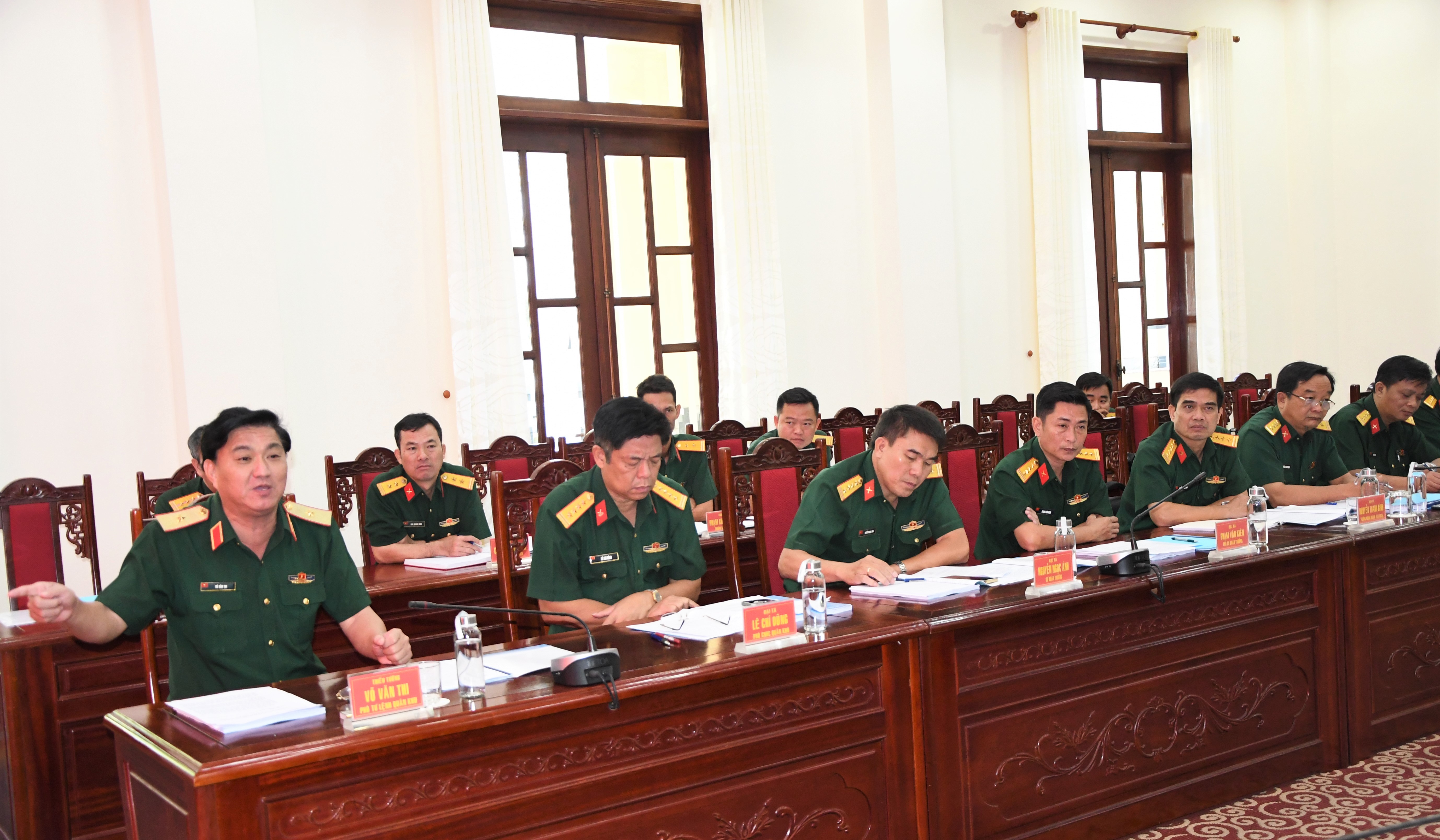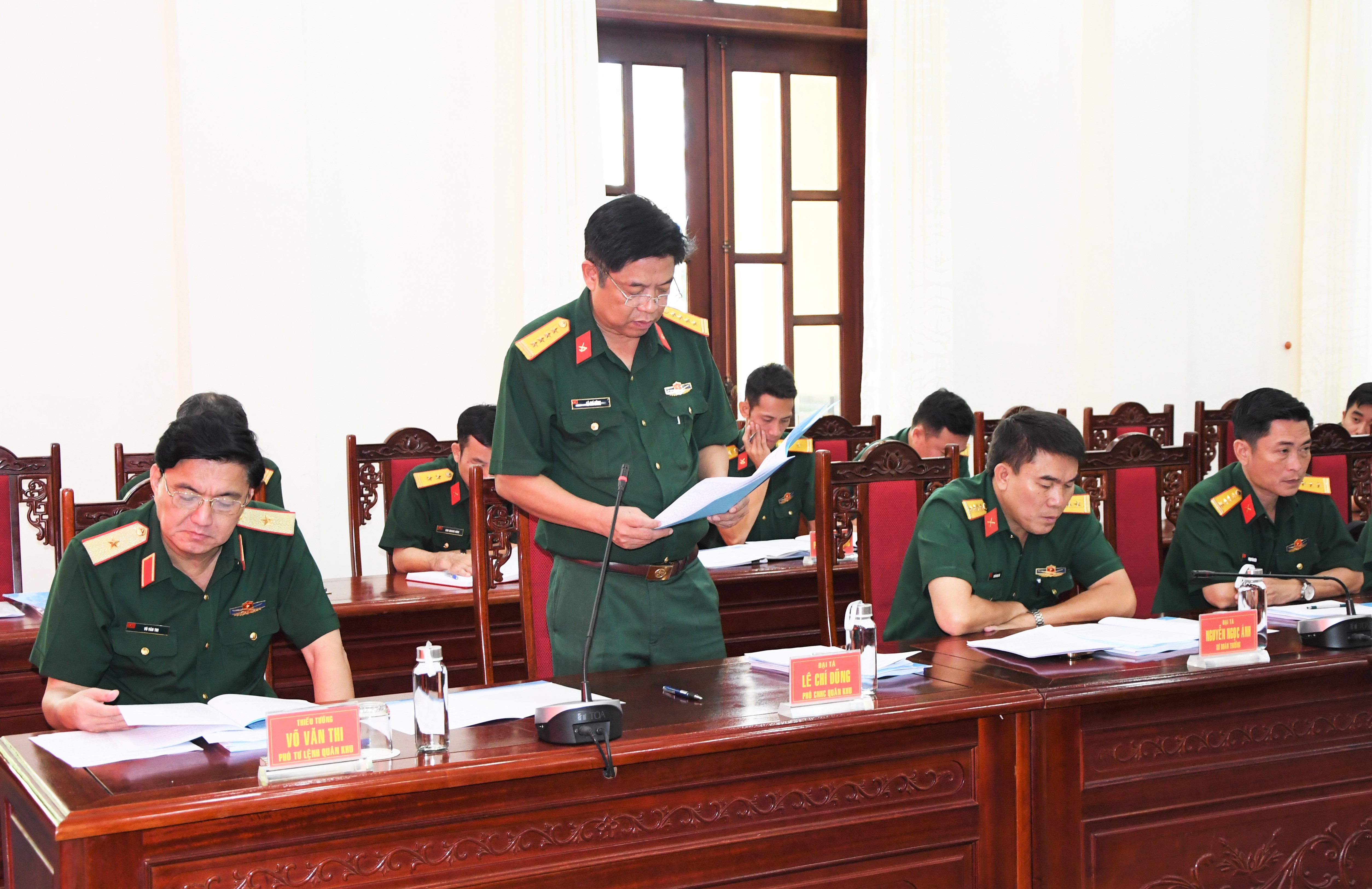Thiếu tướng Võ Văn Thi, Phó Tư lệnh Quân khu tại buổi làm việc với Đoàn khảo sát Bộ quốc phòng.