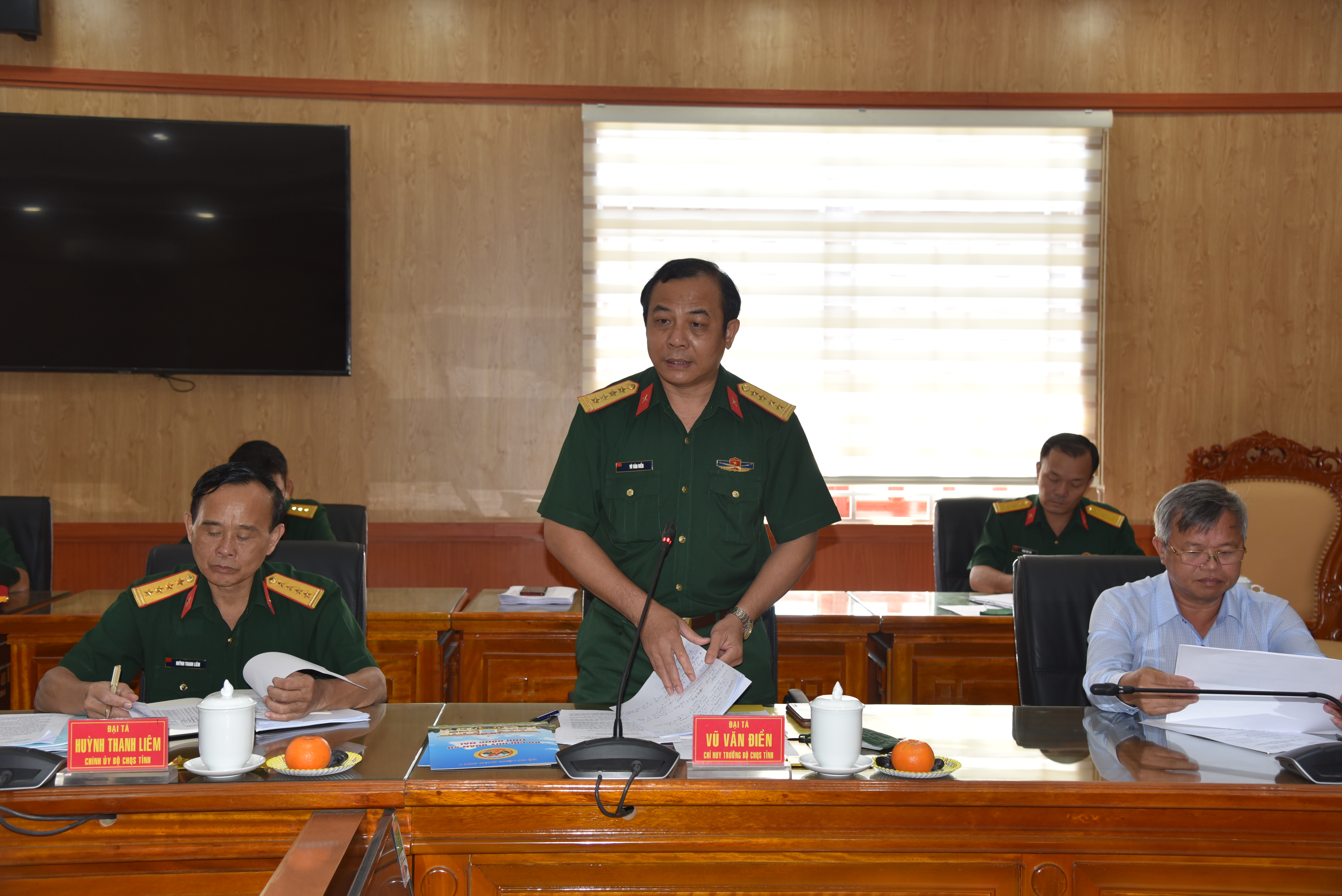 Đại tá Vũ Văn Điền, Chỉ huy trưởng, Bộ CHQS tỉnh Đồng Nai báo cáo công tác tuyển quân với đoàn kiểm tra