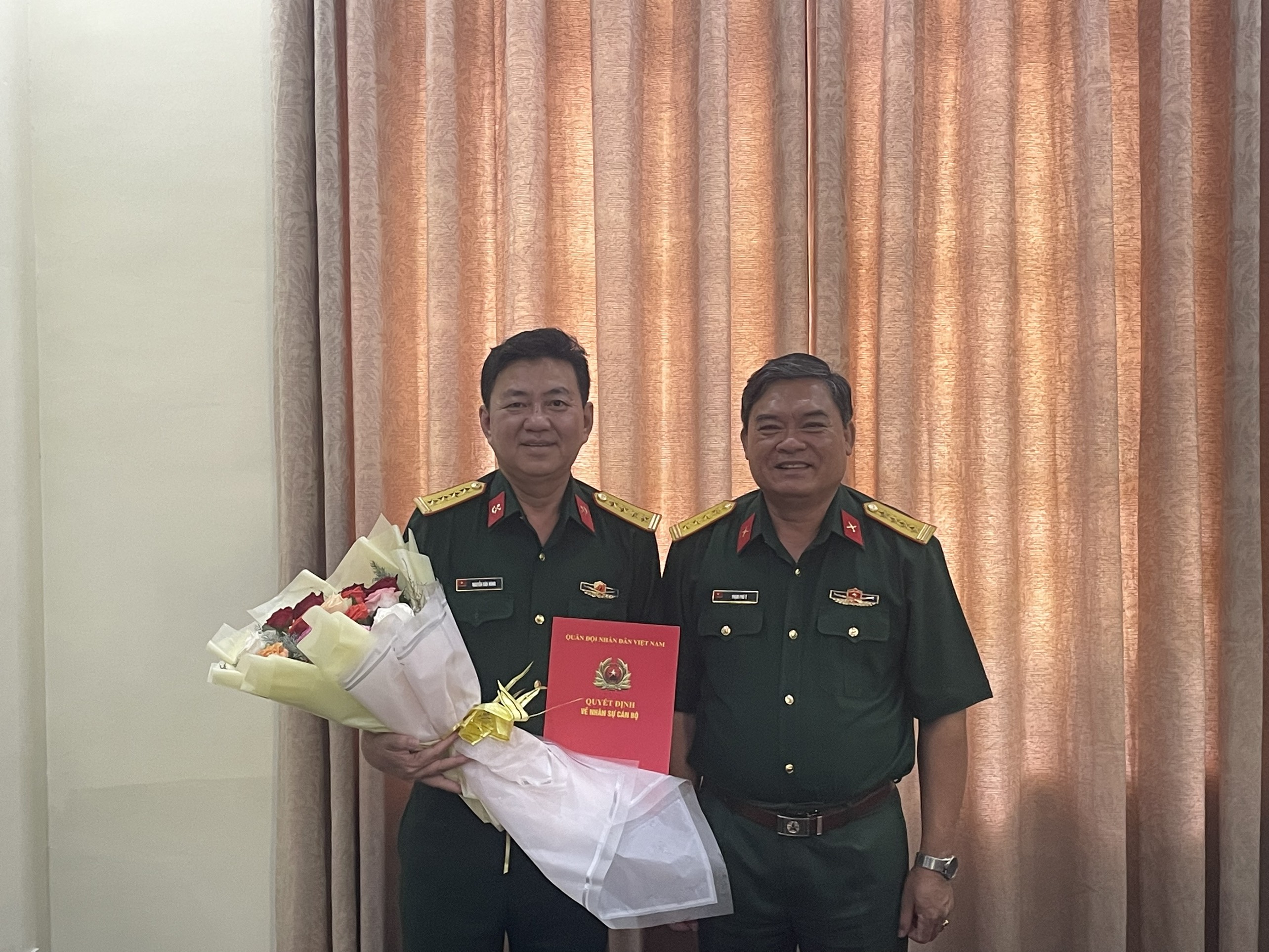 Đại tá Phạm Phú Ý, Phó Tham mưu trưởng Quân khu chúc mừng Đại tá Nguyễn Văn Hùng.