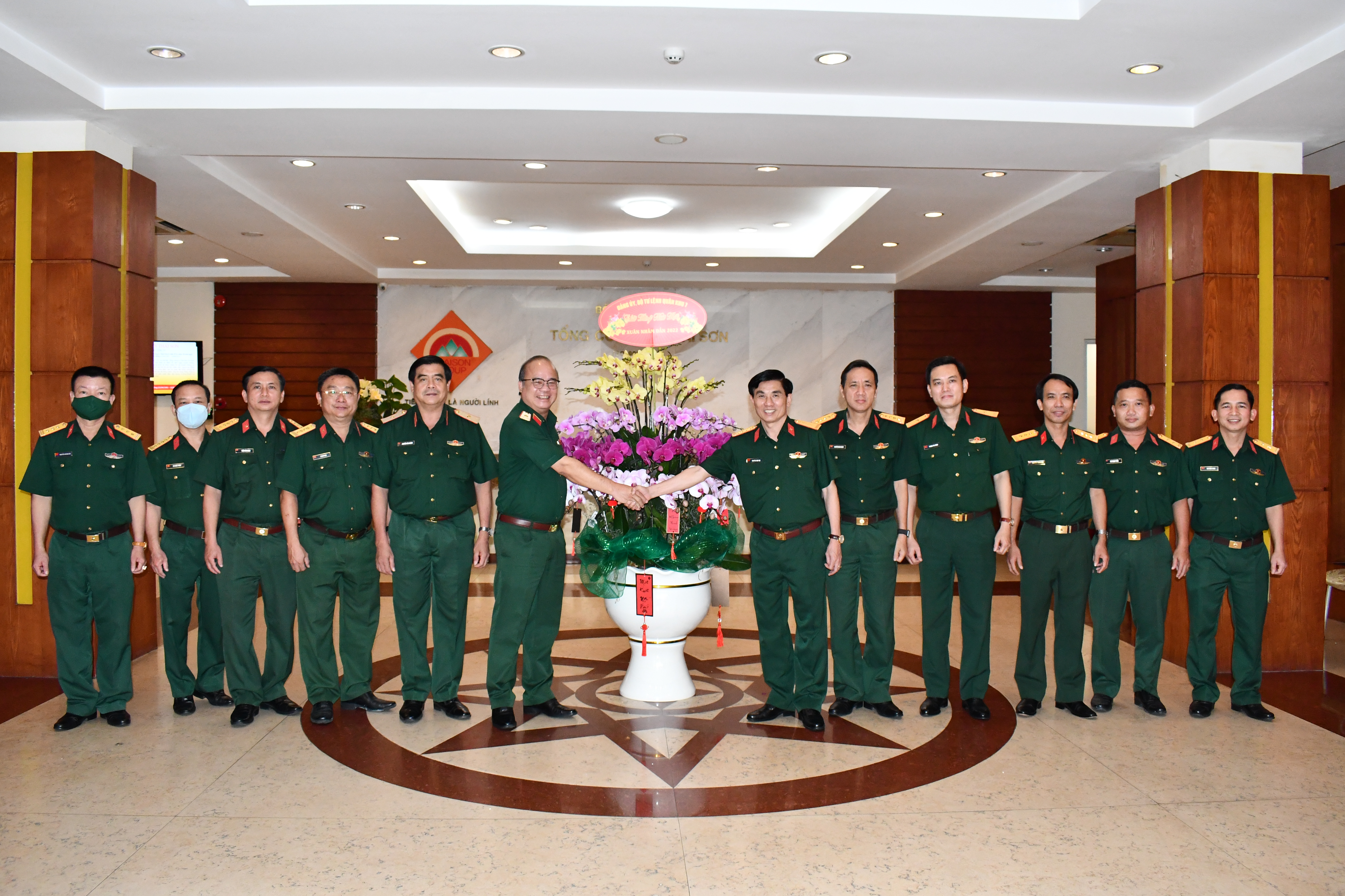 Thiếu tướng Du Trường Giang và đoàn công tác Quân khu chúc mừng năm mới Tổng công ty Thái Sơn.
