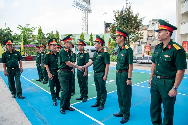 (QK7 Online) - Ngày 17/4, Đại tướng Nguyễn Trọng Nghĩa, Ủy viên Bộ Chính trị, Bí thư Trung ương Đảng, Ủy viên Thường vụ Quân ủy Trung ương, Chủ nhiệm Tổng cục Chính trị Quân đội nhân dân Việt Nam cùng đoàn công tác Quân ủy Trung ương, Bộ Quốc phòng, Tổng cục Chính trị đến thăm, làm việc với cán bộ, chiến sĩ Trung đoàn 10, Bộ Tư lệnh Thành phố Hồ Chí Minh.