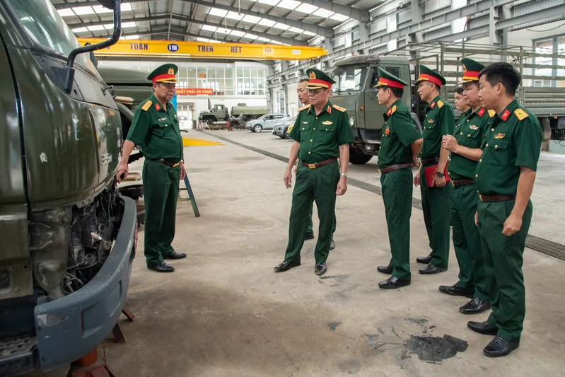 Thiếu tướng Đặng Văn Lẫm kiểm tra Xưởng Z735, Cục Hậu cần - Kỹ thuật Quân khu.