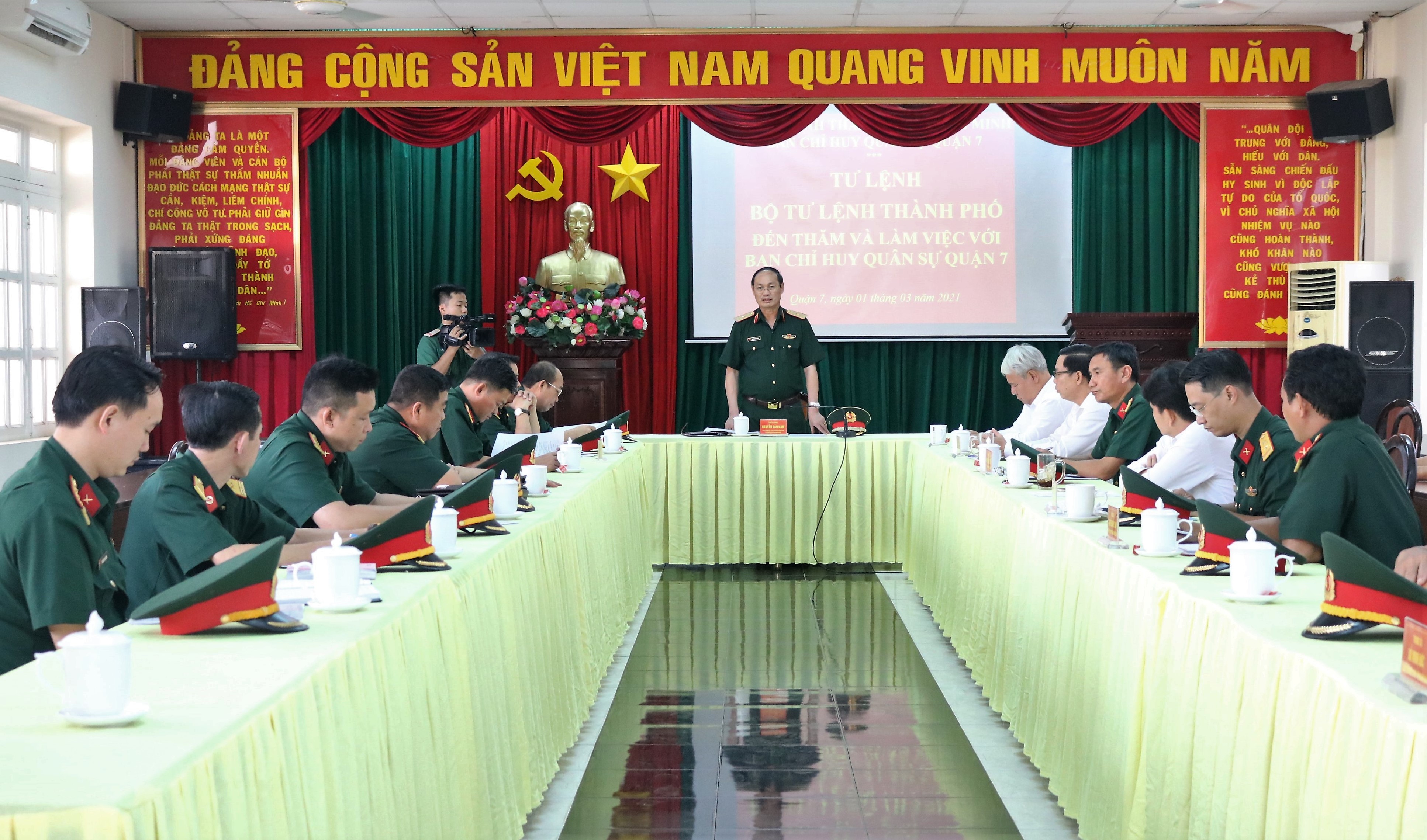 (QK7 Online) - Ngày 1/3, đoàn công tác của Bộ Tư lệnh TPHCM do Thiếu tướng Nguyễn Văn Nam, Ủy viên Ban Thường vụ Thành ủy, Tư lệnh Bộ Tư lệnh Thành phố làm trưởng đoàn kiểm tra công tác chuẩn bị giao nhận quân và công tác phòng chống dịch bệnh Covid-19 tại Quận 7. Dự hội nghị có các đồng chí lãnh đạo Quận ủy - UBND - Ủy ban MTTQ Việt Nam Quận 7 và Ban CHQS quận.