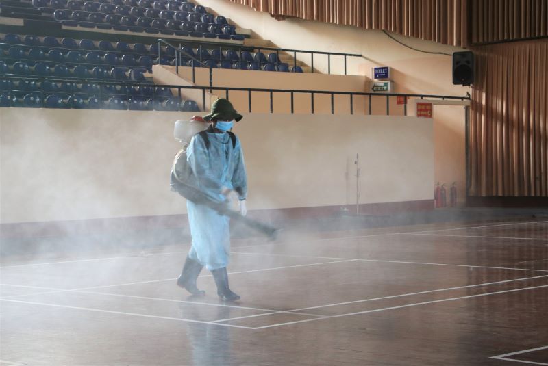 Phun thuốc khử khuẩn khu vực tập luyện.