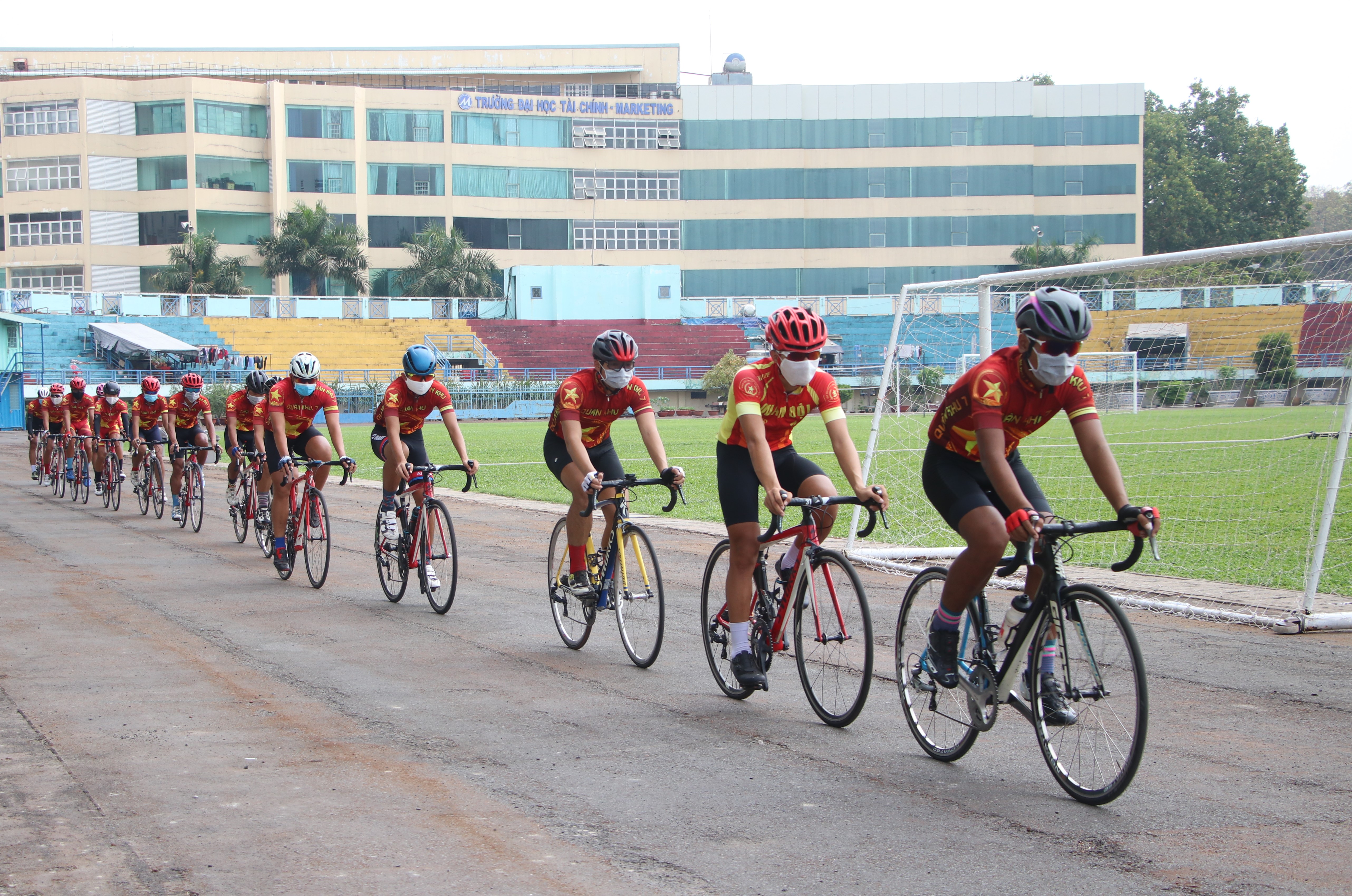 Các VĐV đội tuyển xe đạp Quân khu 7 miệt mài luyện tập trong dịch Covid-19.
