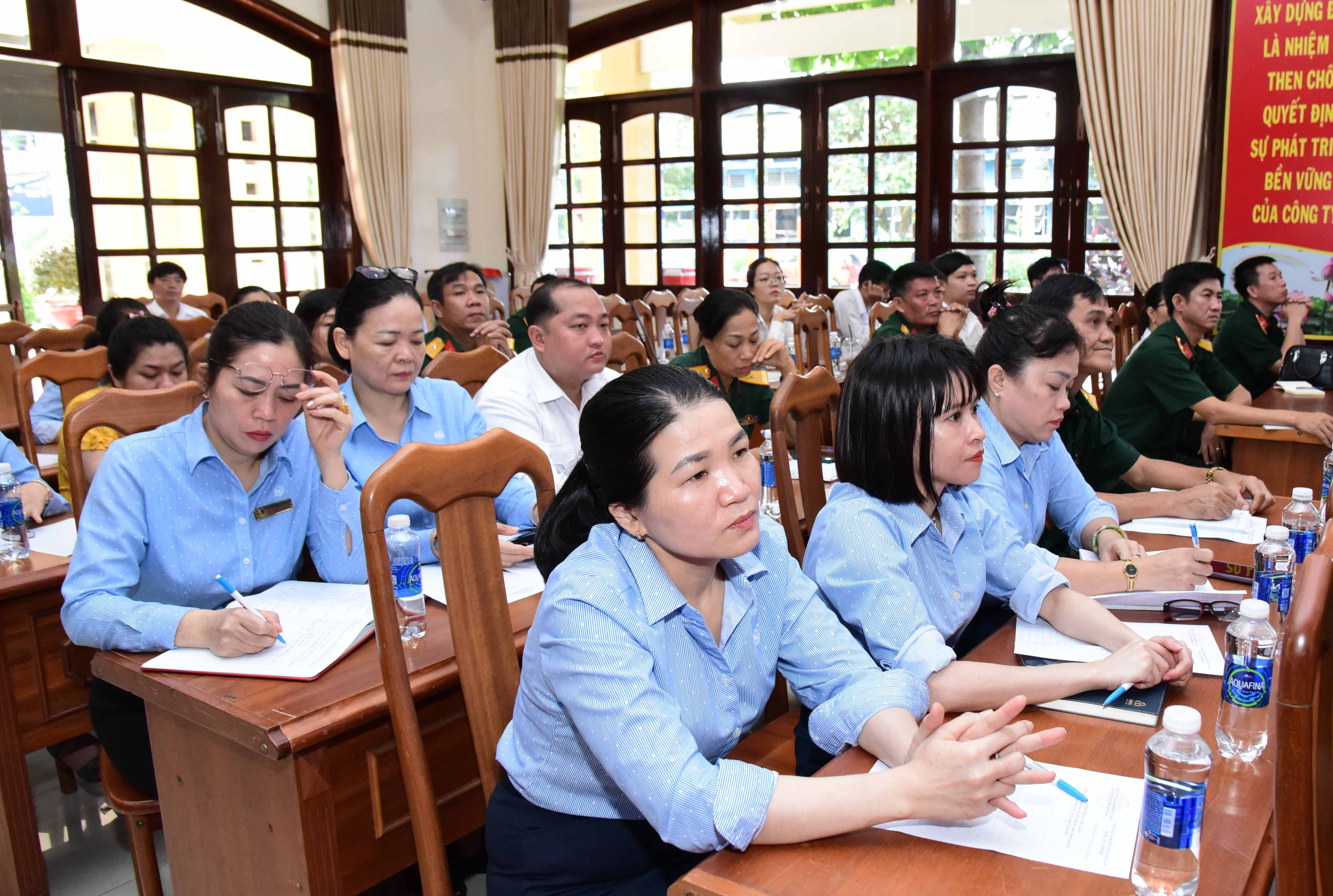 Cán bộ, công nhân viên, người lao động tham gia buổi đối thoại dân chủ.