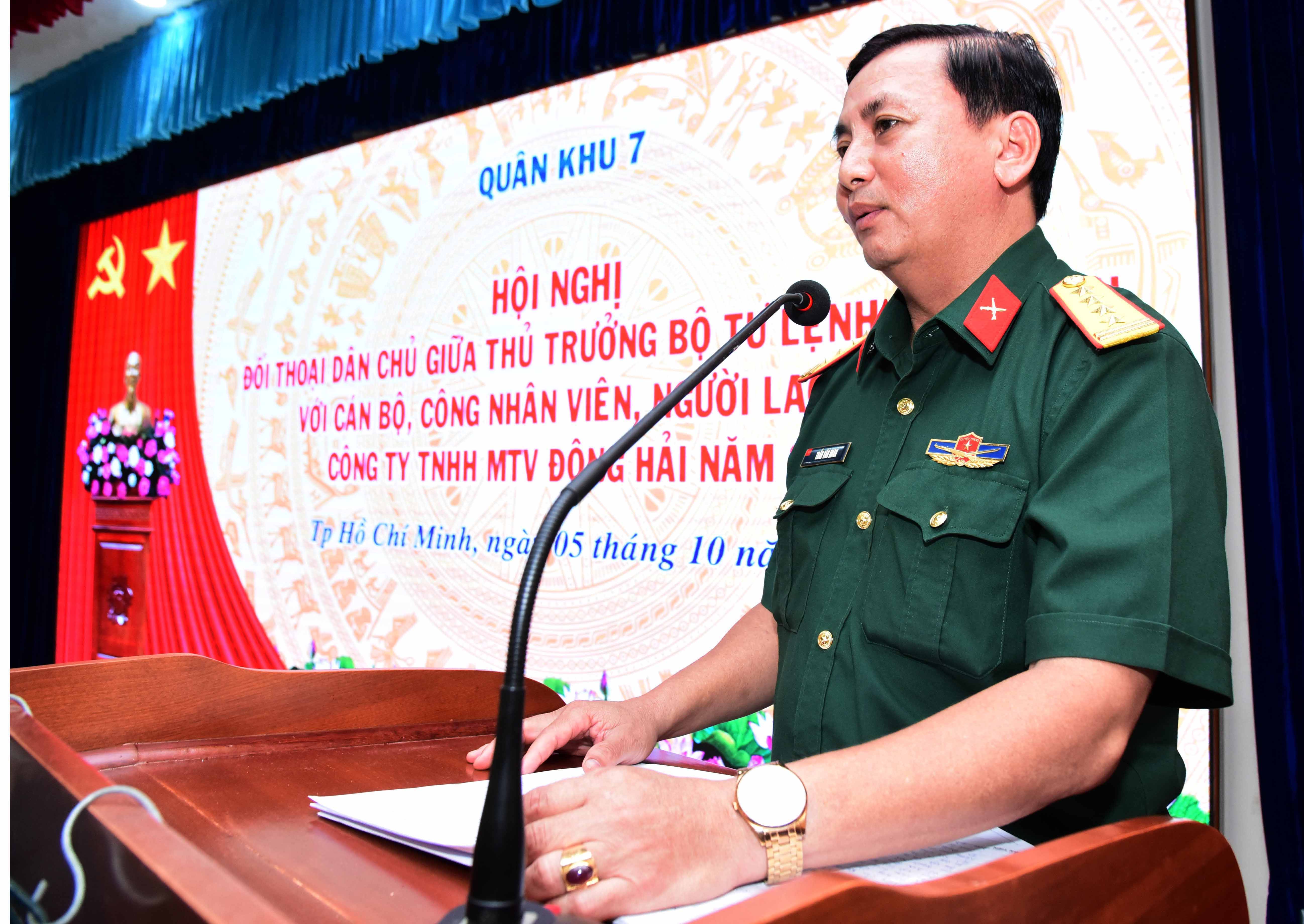Trung tướng Trần Hoài Trung, Bí thư Đảng ủy, Chính ủy Quân khu chủ trì đối thoại dân chủ tại Công ty Đông Hải.