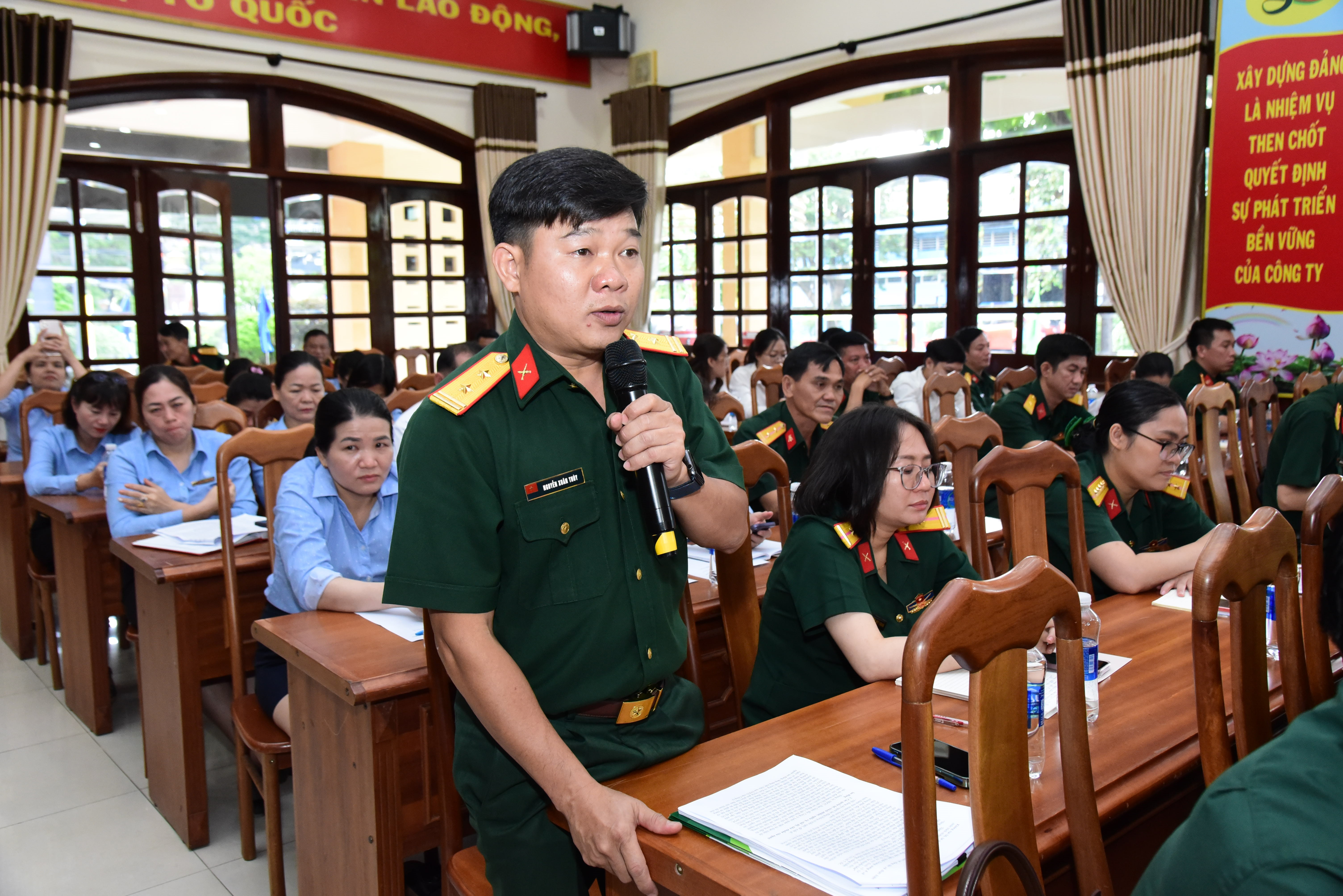 Đồng chí Chính ủy Quân khu gợi ý trong buổi đối thoại dân chủ.