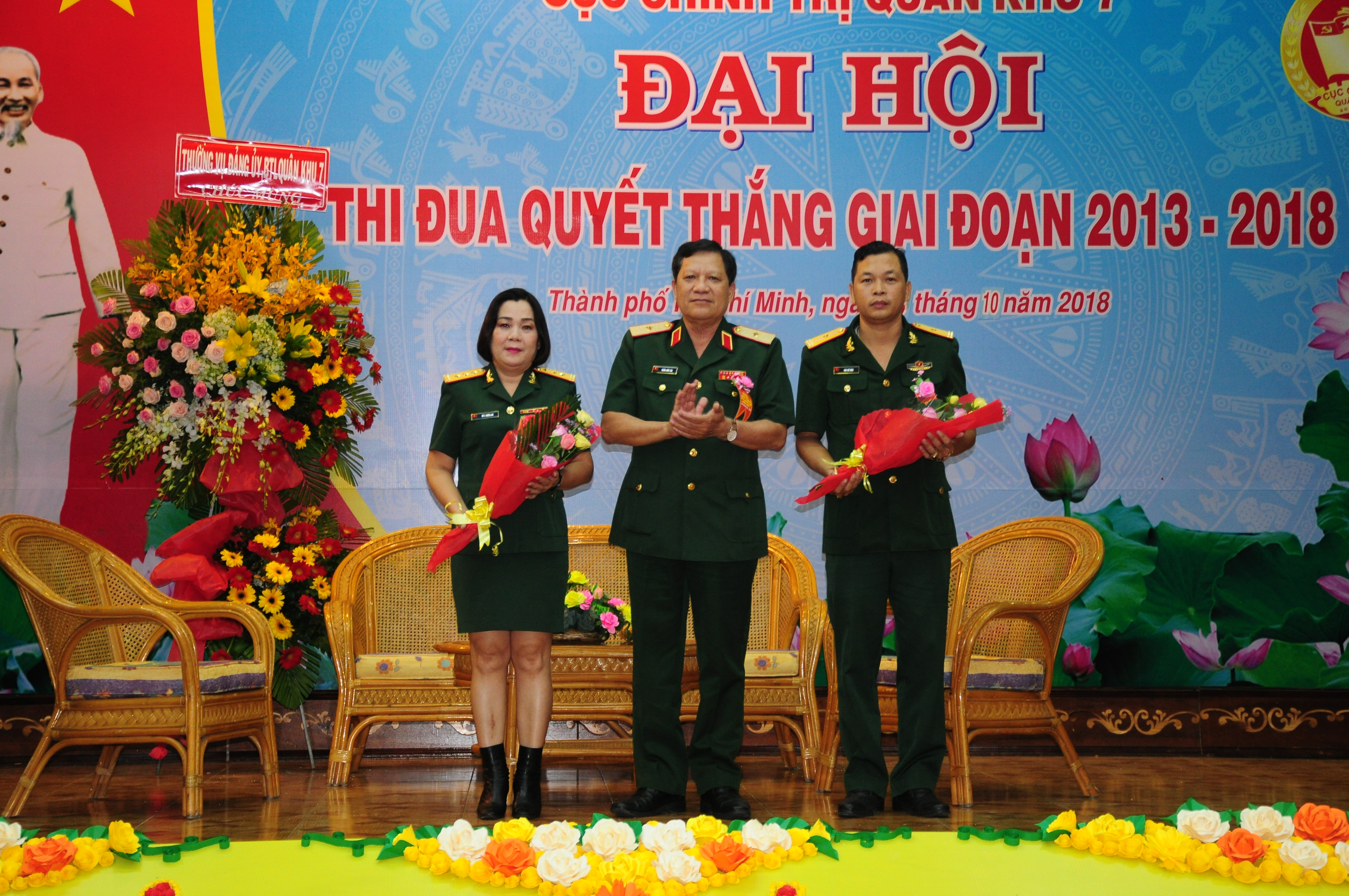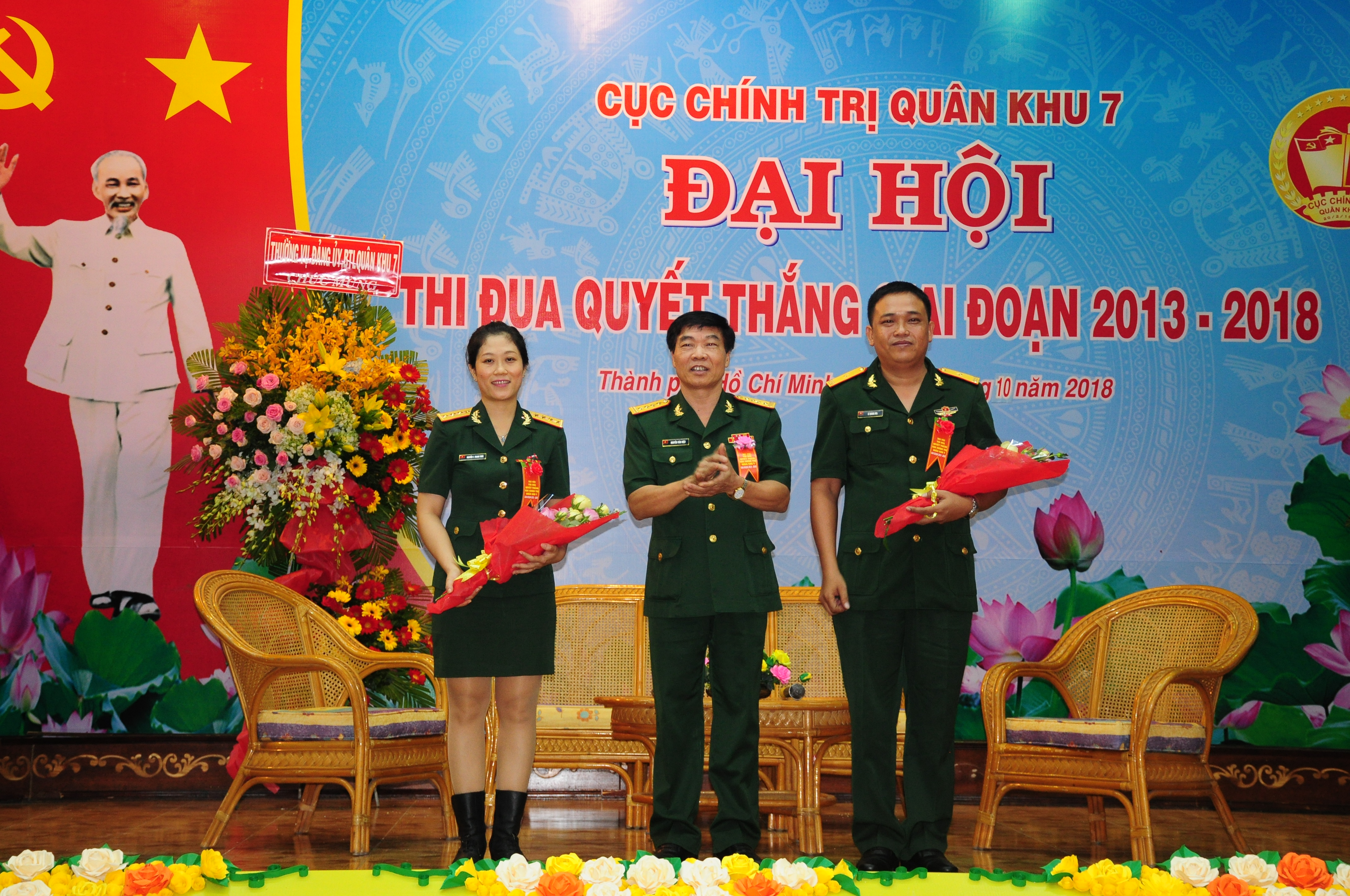 Đại tá Nguyễn Văn Hiệu, Phó Chủ nhiệm Chính trị Quân khu tặng hoa cho