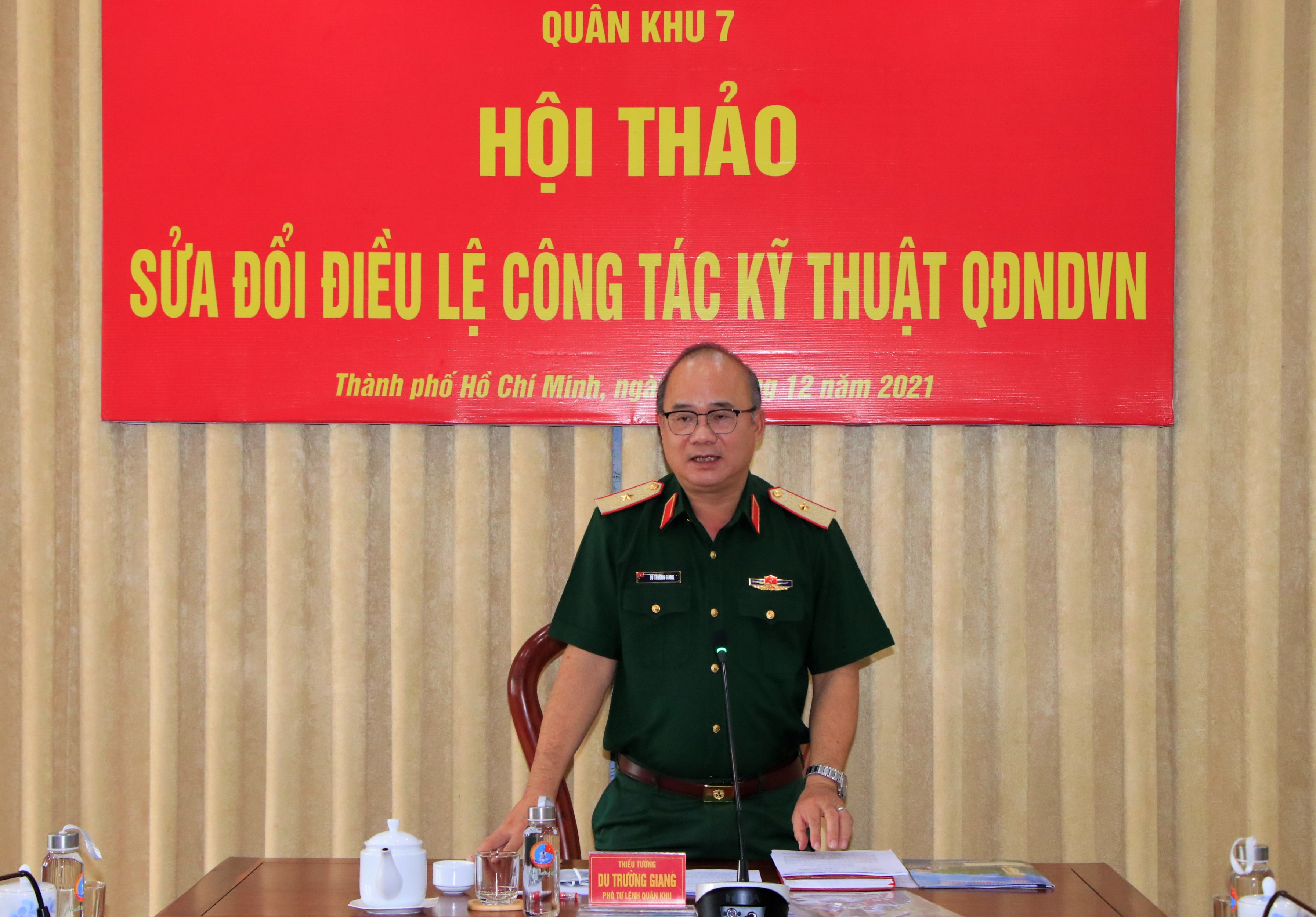 Kết luận tại hội thảo, Thiếu tướng Du Trường Giang, Phó Tư lệnh Quân khu 7 ghi nhận và đánh giá cao các ý kiến đóng góp của các đại biểu tại hội thảo; đồng thời đề nghị Cục Kỹ thuật Quân khu tổng hợp các ý kiến, báo cáo Ban biên soạn bổ sung những nội dung đã thống nhất tại hội thảo theo quy định.