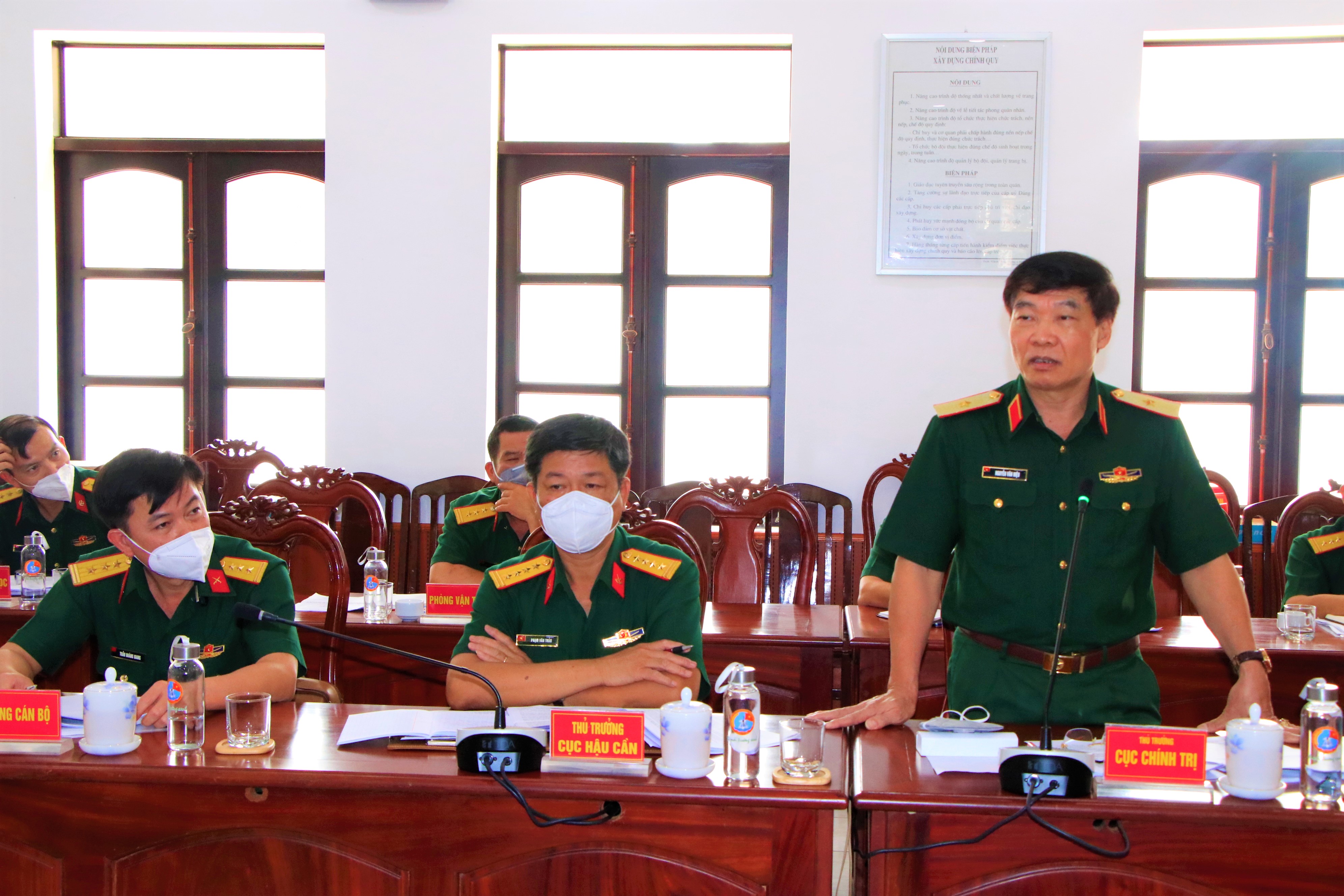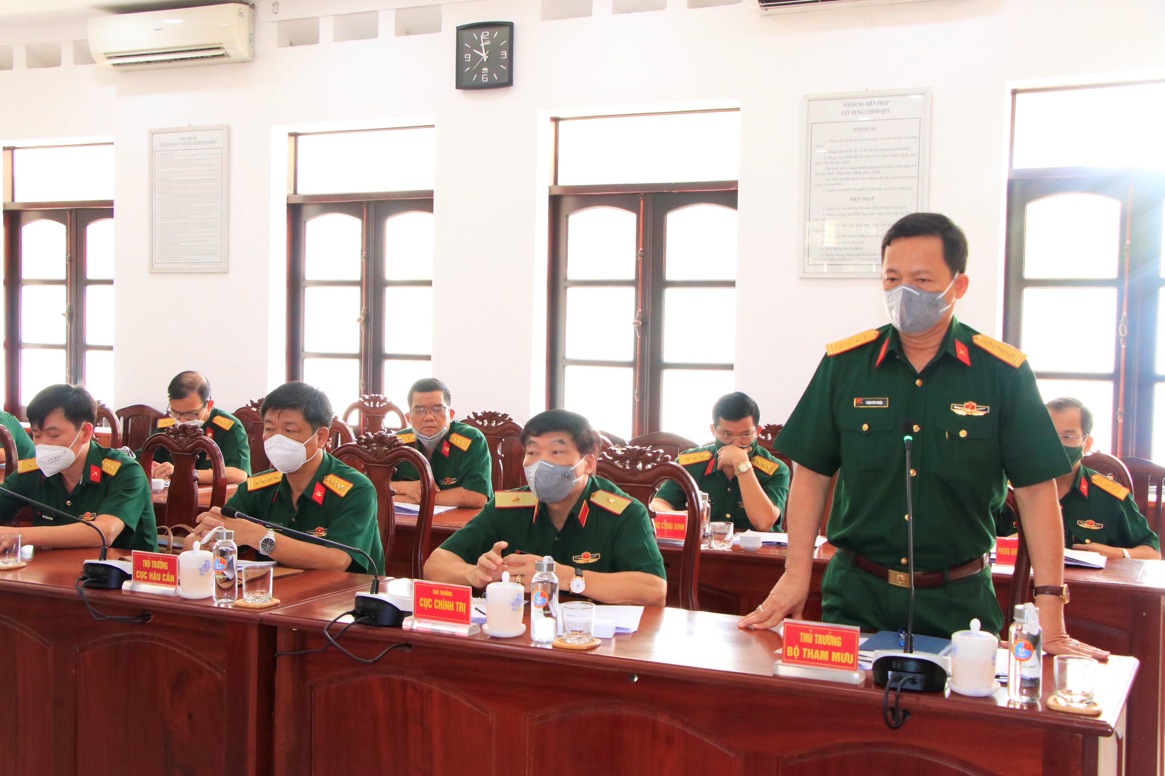Thiếu tướng Nguyễn Văn Hiệu, Phó Chủ nhiệm Chính trị Quân khu đóng góp ý kiến vào dự thảo.