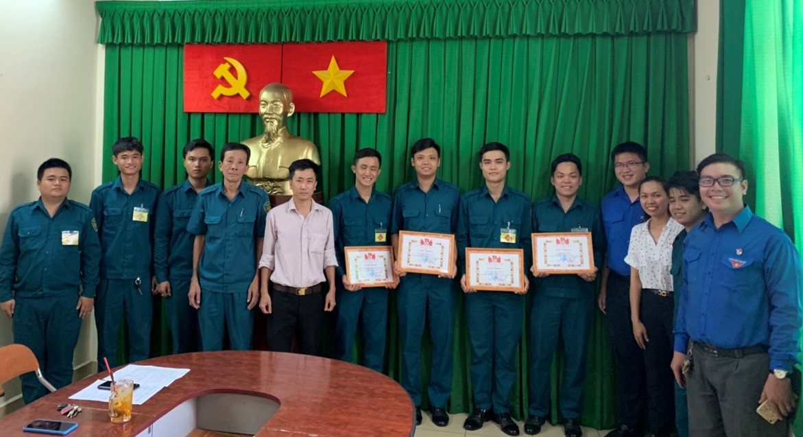 Các chiến sĩ dân quân phường 2, Quận 8 nhận giấy khen.