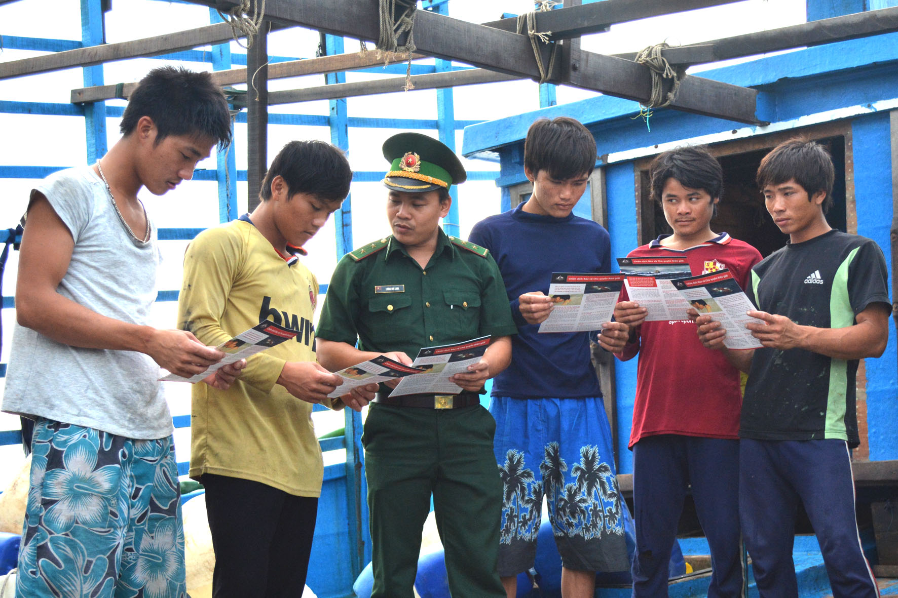 Lực lượng BĐBP tỉnh Bà Rịa – Vũng Tàu tuyên truyền pháp luật cho ngư dân.