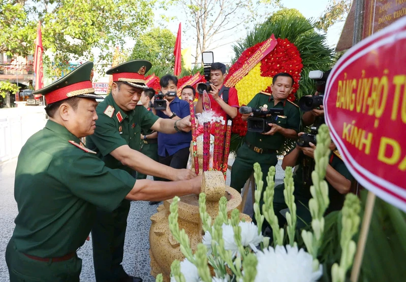 Đại tướng Nguyễn Trọng Nghĩa, Ủy viên Bộ Chính trị, Bí thư Trung ương Đảng, Chủ nhiệm Tổng cục Chính trị QĐNDVN thắp hương tưởng niệm các anh hùng liệt sĩ.