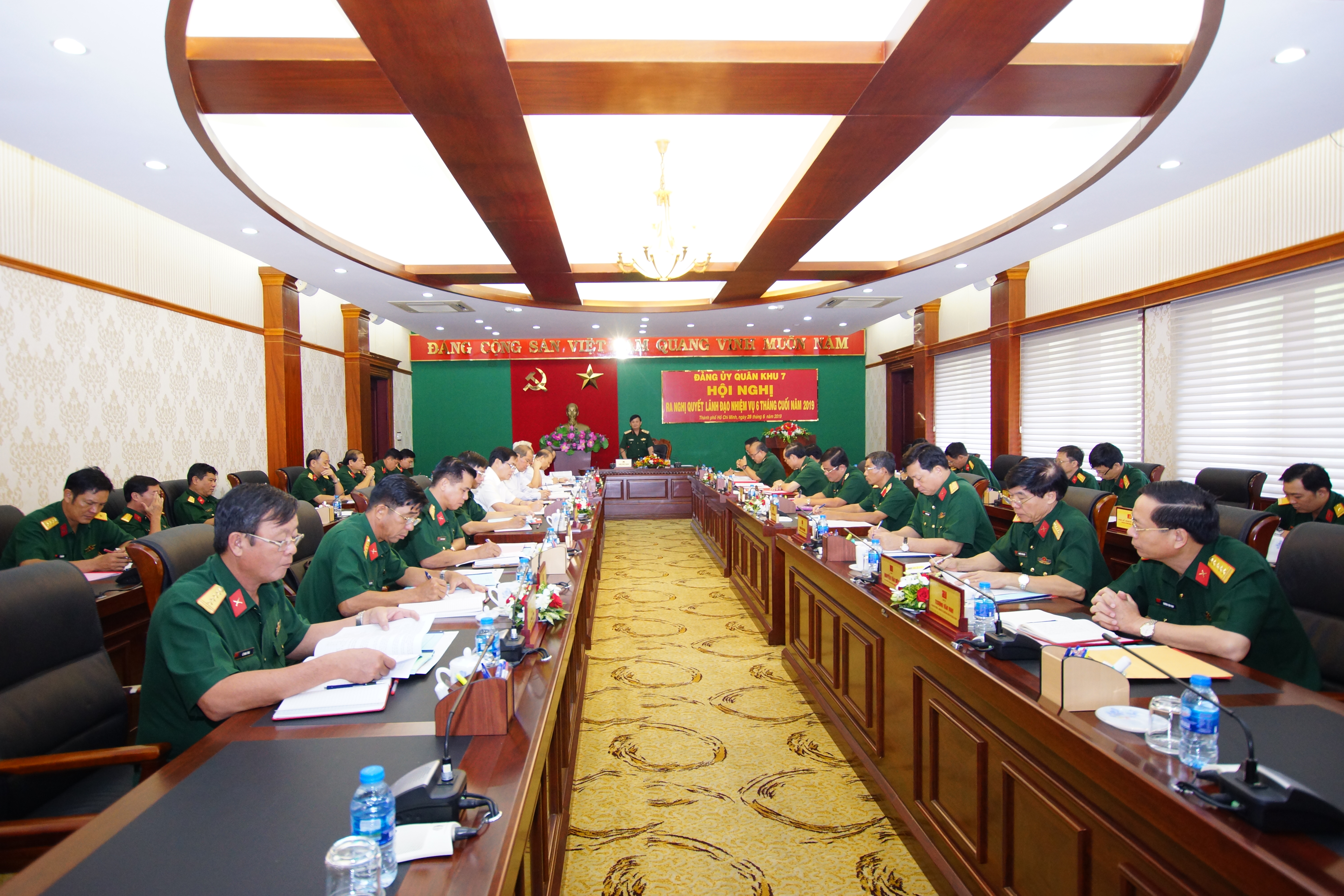 Hội nghị đánh giá, 6 tháng đầu năm 2019, Đảng ủy – Bộ Tư lệnh Quân khu 7 tham mưu giúp Quân ủy Trung ương, Bộ Quốc phòng nắm chắc tình hình nội địa, biên giới, biển đảo, ngoại biên; chỉ đạo phối hợp xử lý tốt các tình huống, không để bị động, bất ngờ; giữ vững an ninh chính trị tạo điều kiện thuận lợi để phát triển kinh tế - xã hội. Củng cố hệ thống phòng thủ tuyến biên giới đất liền, ven biển, đảo và thế trận khu vực phòng thủ trên địa bàn Quân khu.