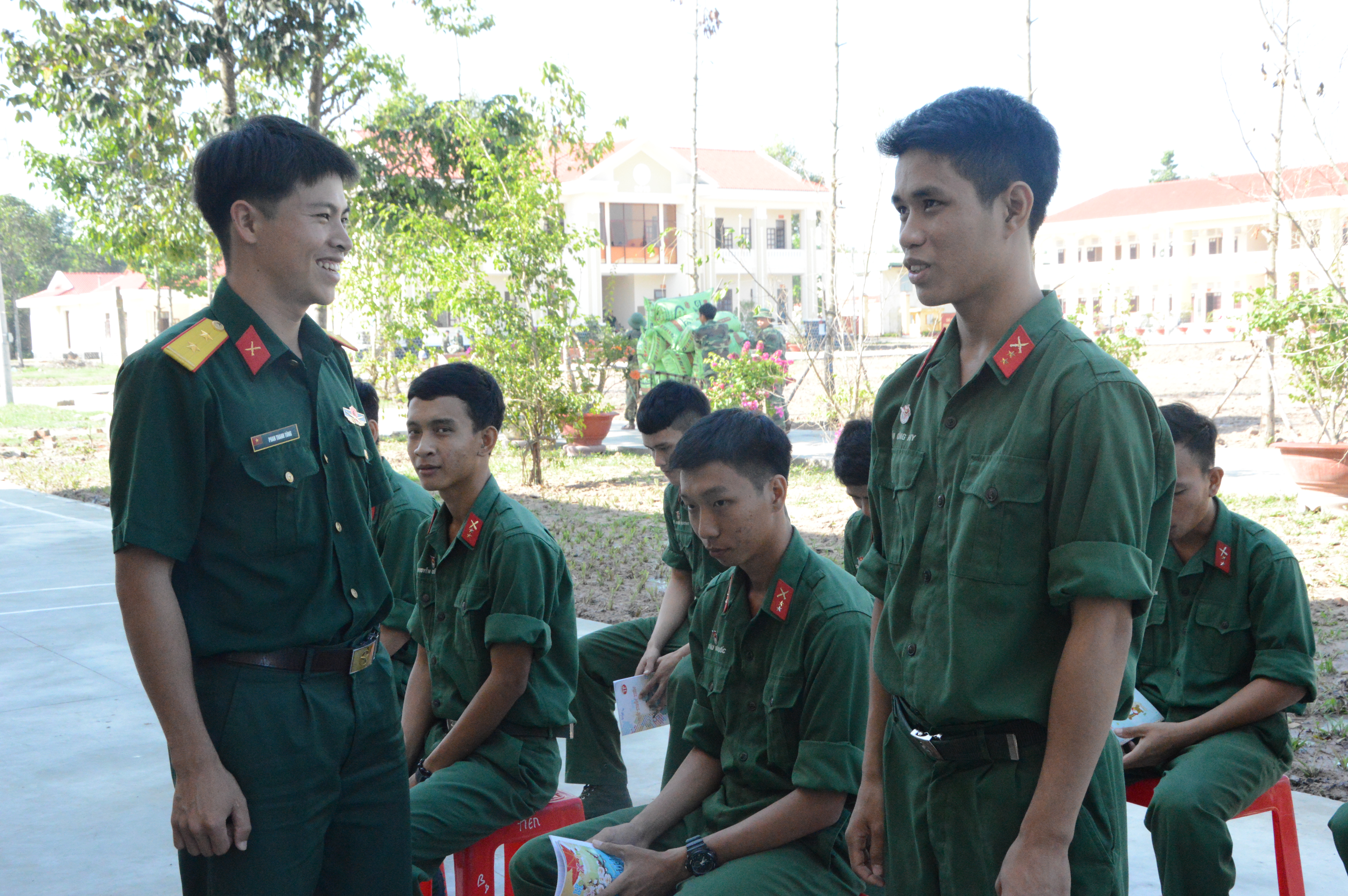 Chiến sĩ đối thoại trao đổi với chỉ huy đơn vị về thực hiện quy chế dân chủ ở cơ sở