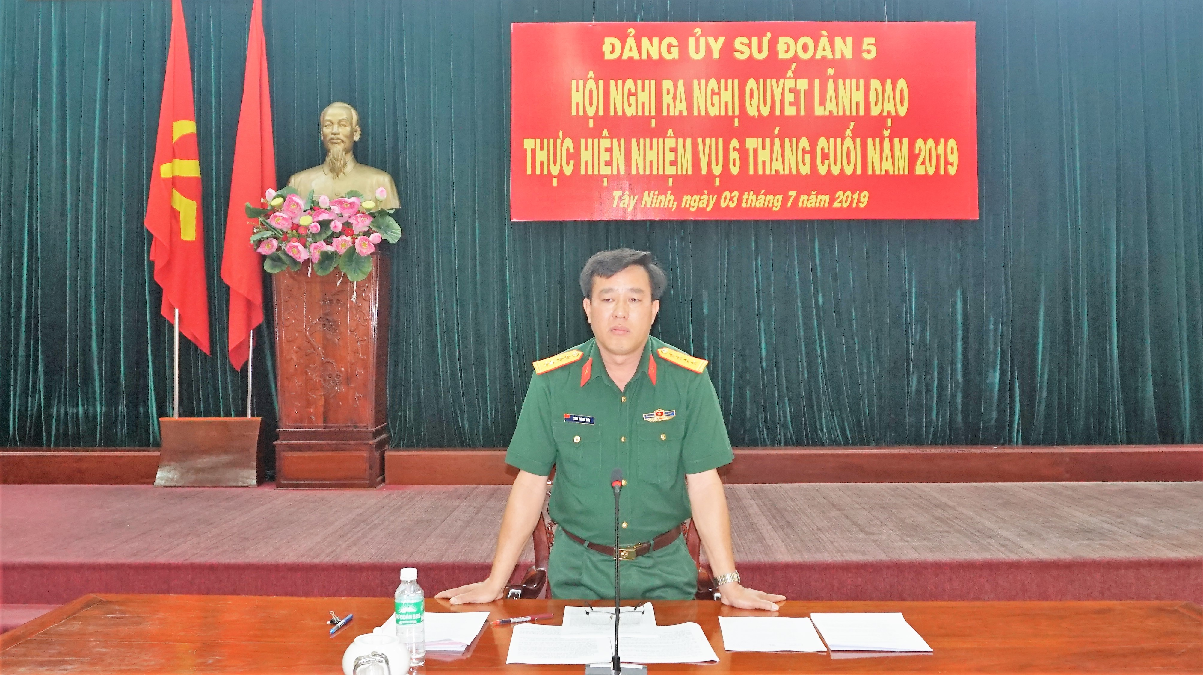 Phát biểu chỉ đạo tại hội nghị, Thiếu tướng Võ Văn Thi, Phó Tư lệnh Quân khu biểu dương những kết quả mà Sư đoàn đã đạt được trong 6 tháng đầu năm 2019. Đồng chí Phó Tư lệnh Quân khu yêu cầu trong thời gian tới, Sư đoàn 5 tập trung nâng cao chất lượng công tác cán bộ, quản lý, duy trì kỷ luật và giải quyết dứt điểm những tồn đọng về quản lý, sử dụng đất quốc phòng. Đối với công tác huấn luyện, cần tập trung vào huấn luyện cán bộ, nội dung diễn tập cơ động, huấn luyện đêm và bắn đạn thật, tích cực đổi mới công tác huấn luyện chiến đấu theo hướng chuyên sâu, sát với thực tế chiến đấu; thường xuyên bảo đảm tốt VKTBKT có trong biên chế, chăm lo, nâng cao chất lượng đời sống của bộ đội. Xây dựng mối đoàn kết thống nhất trong toàn Đảng bộ, quyết tâm thực hiện thắng lợi nhiệm vụ 6 tháng cuối năm 2019.