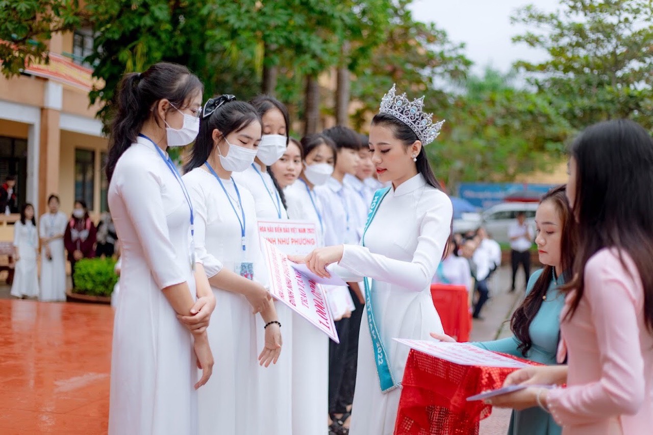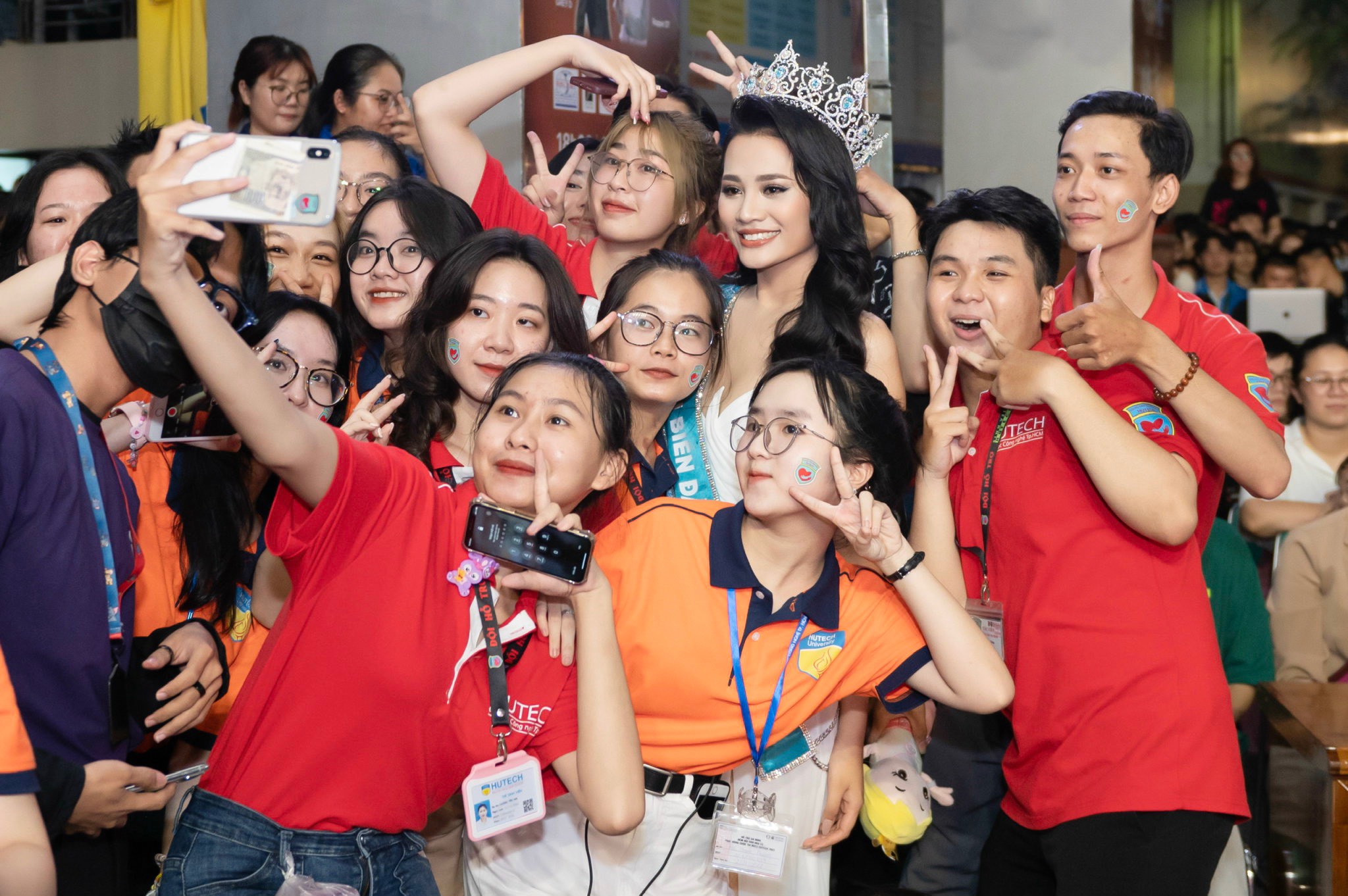 Đinh Như Phương trở về Trường Đại học Công Nghệ TP.HCM với cương vị Hoa hậu và nhận được sự đón nồng nhiệt từ thầy cô và bạn bè.