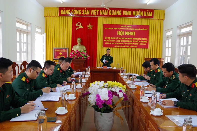 (QK7 Online) - Ngày 3/12, Đoàn công tác Ban Chỉ đạo các Chương trình Mục tiêu quốc gia của Bộ Quốc phòng do Đại tá Trần Anh Nghĩa, Phó trưởng phòng Kinh tế Sự nghiệp, Cục Tài chính Bộ QUốc phòng làm trưởng đoàn kiểm tra, giám sát kết quả thực hiện Chương trình Mục tiêu quốc gia (MTQG) phát triển kinh tế - xã hội vùng đồng bào dân tộc thiểu số và miền núi năm 2024, 2025 tại Đoàn Kinh tế - Quốc phòng (KTQP) Lâm Đồng.