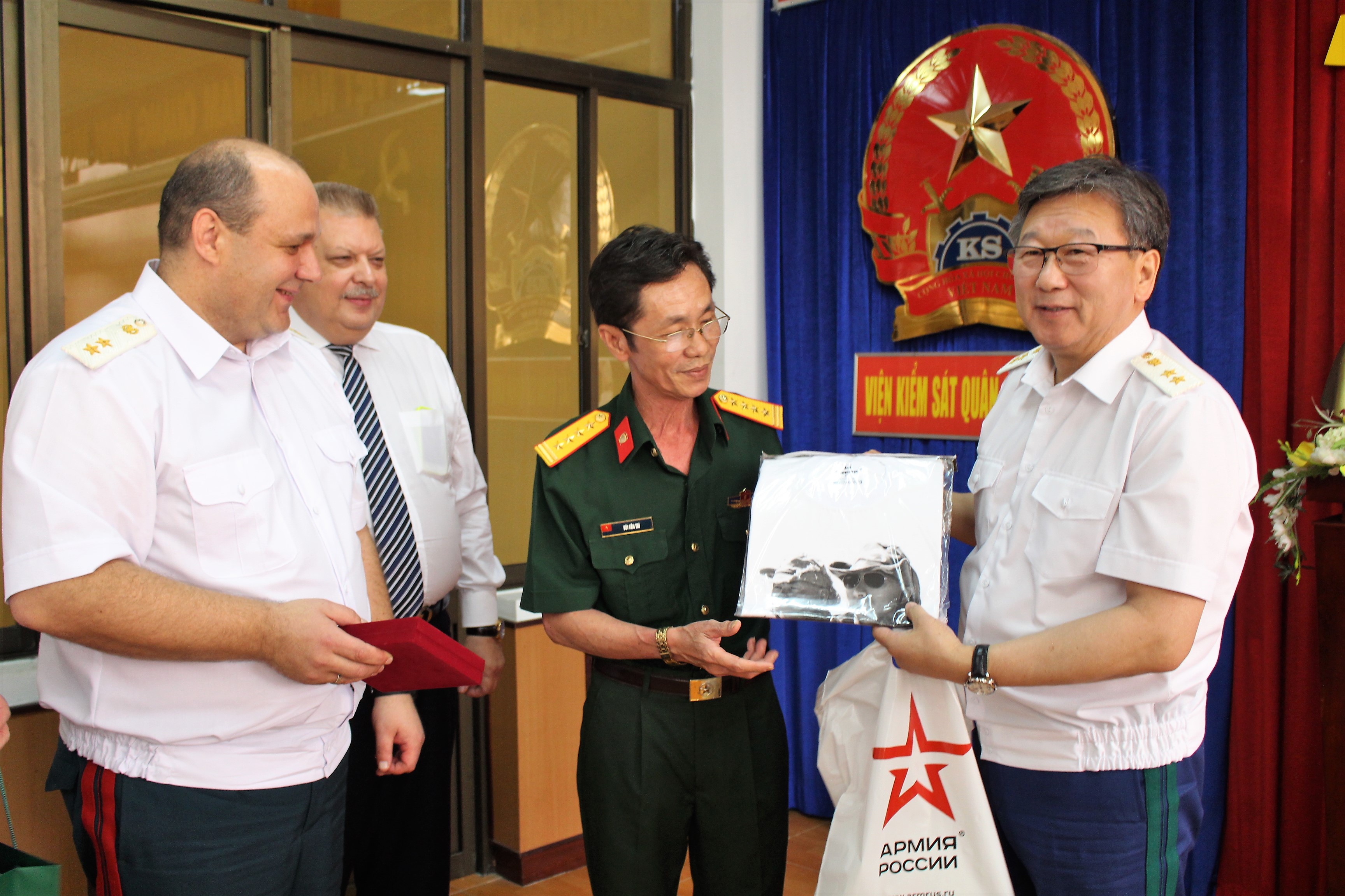 Ngài Petrov Valery Georgievich tặng quà cho Đại tá Bùi Văn Trí, Viện trưởng Viện kiểm sát Quân sự Quân khu 7