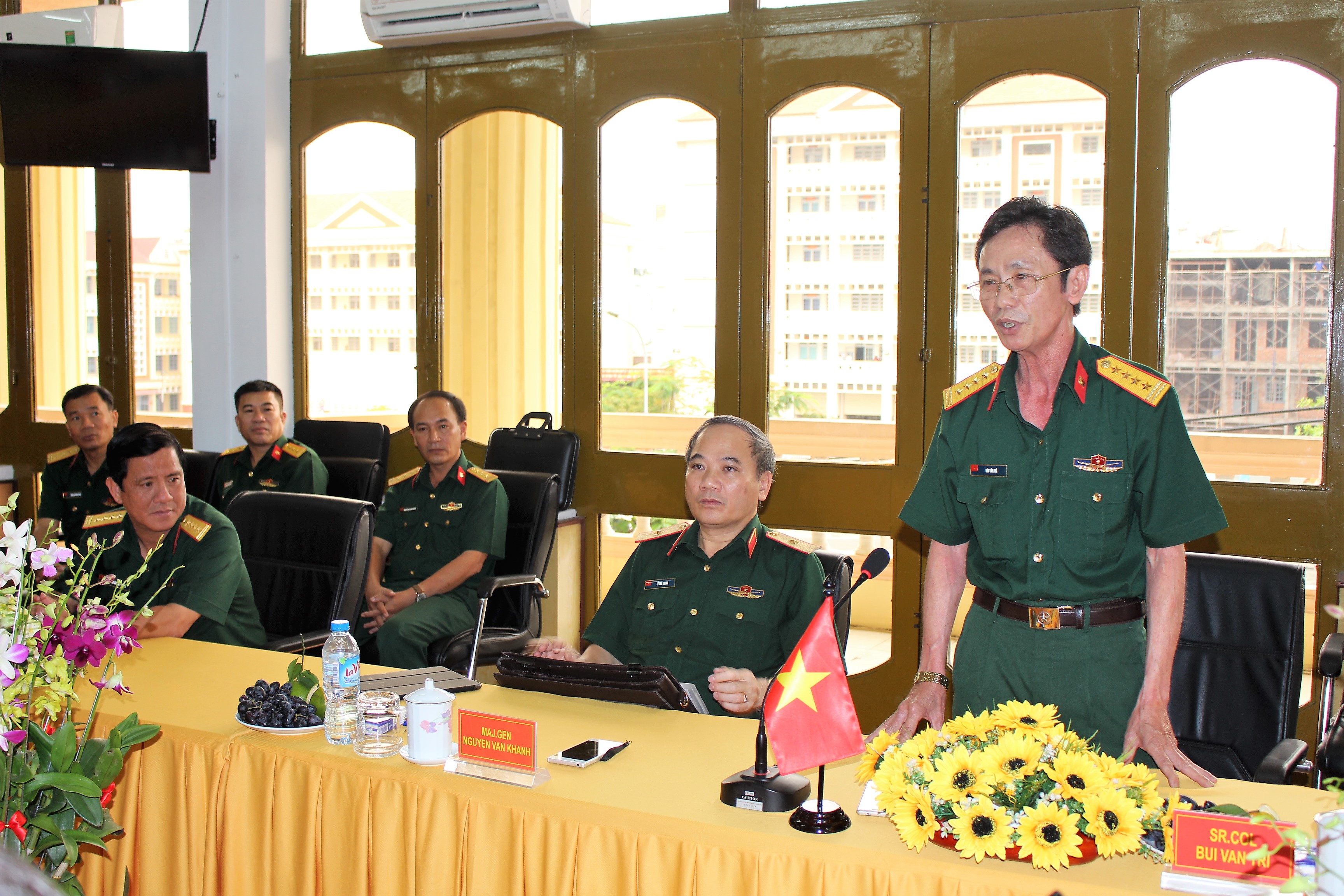 Đại tá Bùi Văn Trí, Viện trưởng Viện kiểm sát quân sự Quân khu 7 phát biểu tại buổi làm việc