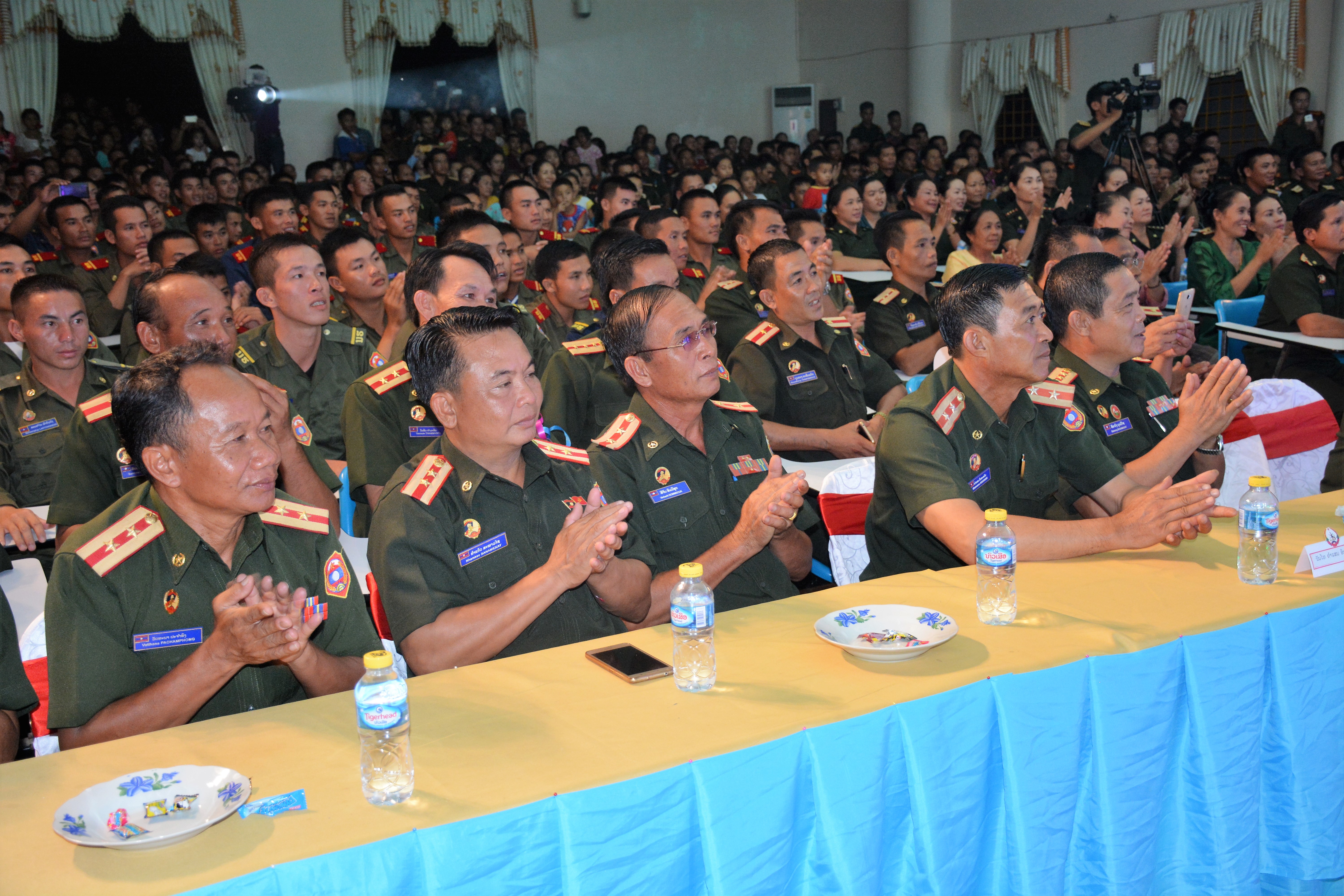 Cán bộ, giảng viên, học viên nhà trường hào hứng với các tiết mục của Đoàn Văn công Quân khu 7