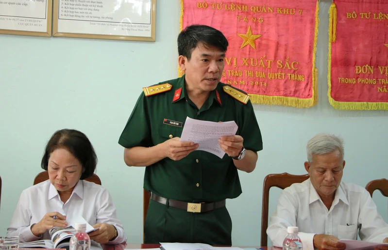 Dự hội thảo có Đại tá Phạm Thanh Nhân, Chủ nhiệm Chính trị Cục Hậu cần - Kỹ thuật Quân khu; Đại tá Trần Huy Định, Trưởng phòng Khoa học Quân sự, Bộ Tham mưu Quân khu; Đại tá Nguyễn Mạnh Cương, Trưởng Ban đại diện phía Nam, Nhà xuất bản Quân đội và thủ trưởng Xí nghiệp May các thời kì.