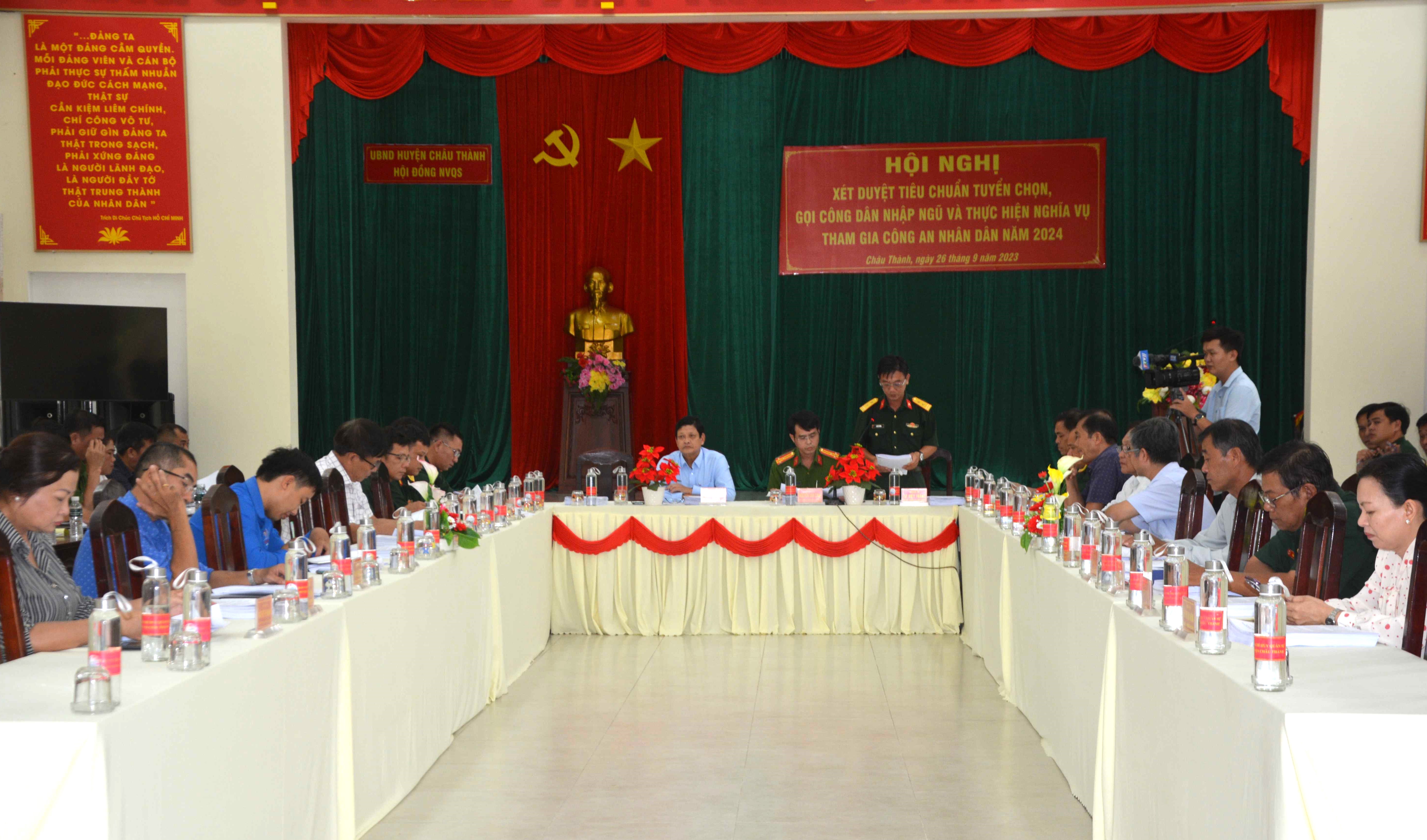 Năm 2024, huyện Châu Thành đưa ra xét duyệt 5.004 công dân. Trong đó, tuổi từ 18 đến 25 có 4.760 công dân; từ 26 đến 27 tuổi có 244 công dân. Đủ điều kiện điều động sơ tuyển sức khỏe có 2.383 công dân; tạm hoãn gọi nhập ngũ và miễn gọi nhập ngũ có 2.400 công dân.