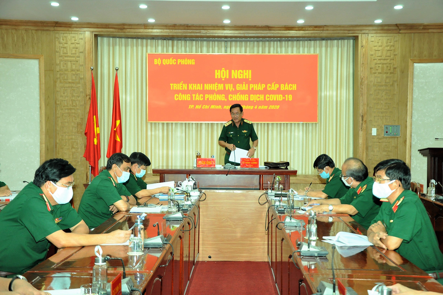 Trung tướng Võ Minh Lương - Ủy viên Trung ương Đảng, Tư lệnh Quân khu chủ trì điểm cầu Quân khu 7 tại hội nghị trực tuyến của Bộ Quốc phòng triển khai nhiệm vụ, giải pháp cấp bách phòng, chống dịch Covid-19.