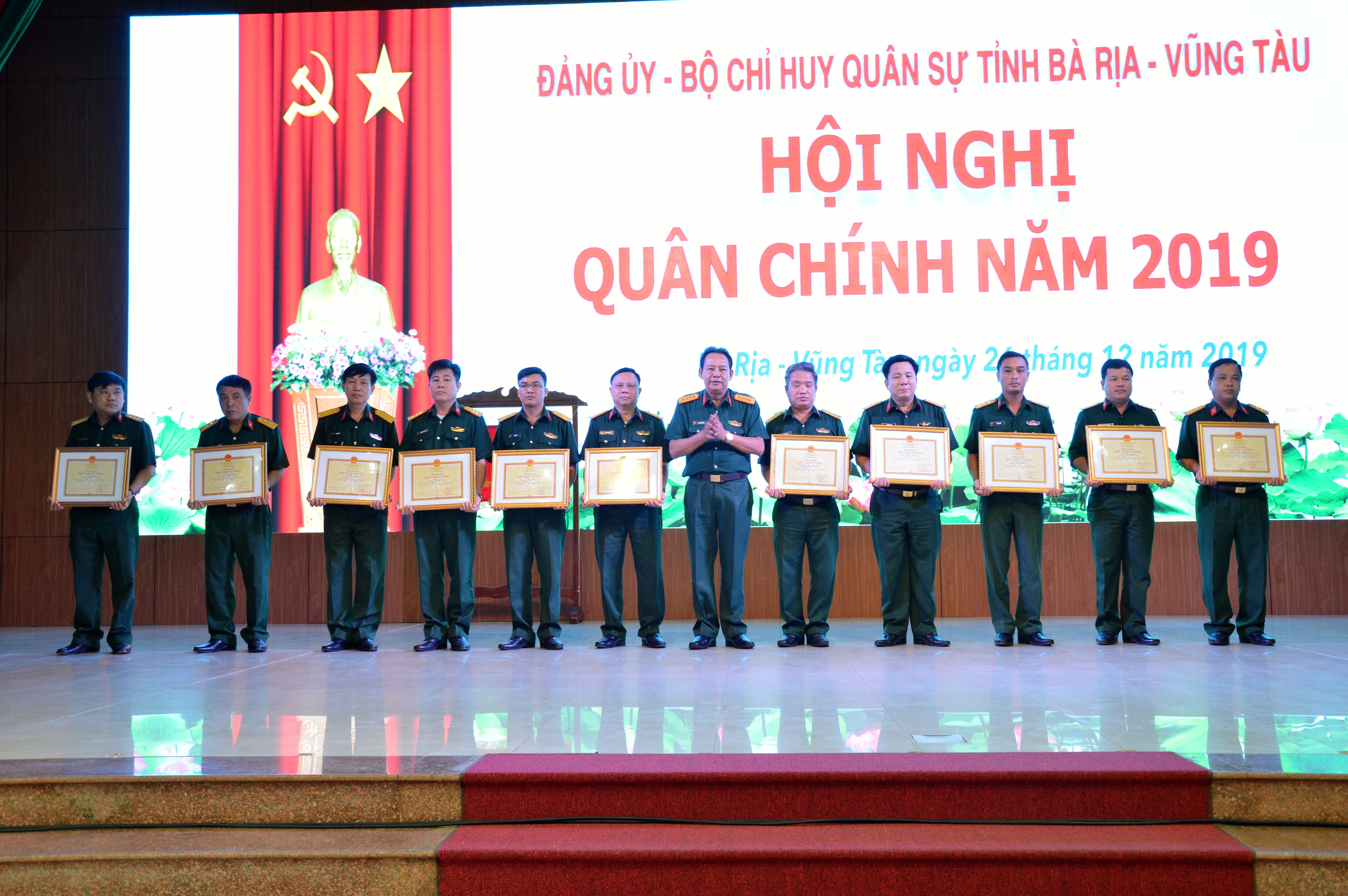 Đại tá Phạm Phú Ý - Chỉ huy trưởng Bộ CHQS tỉnh BR-VT tặng bằng khen các tập thể, cá nhân có thành tích xuất sắc trong thực hiện nhiệm vụ quân sự quốc phòng năm 2019.
