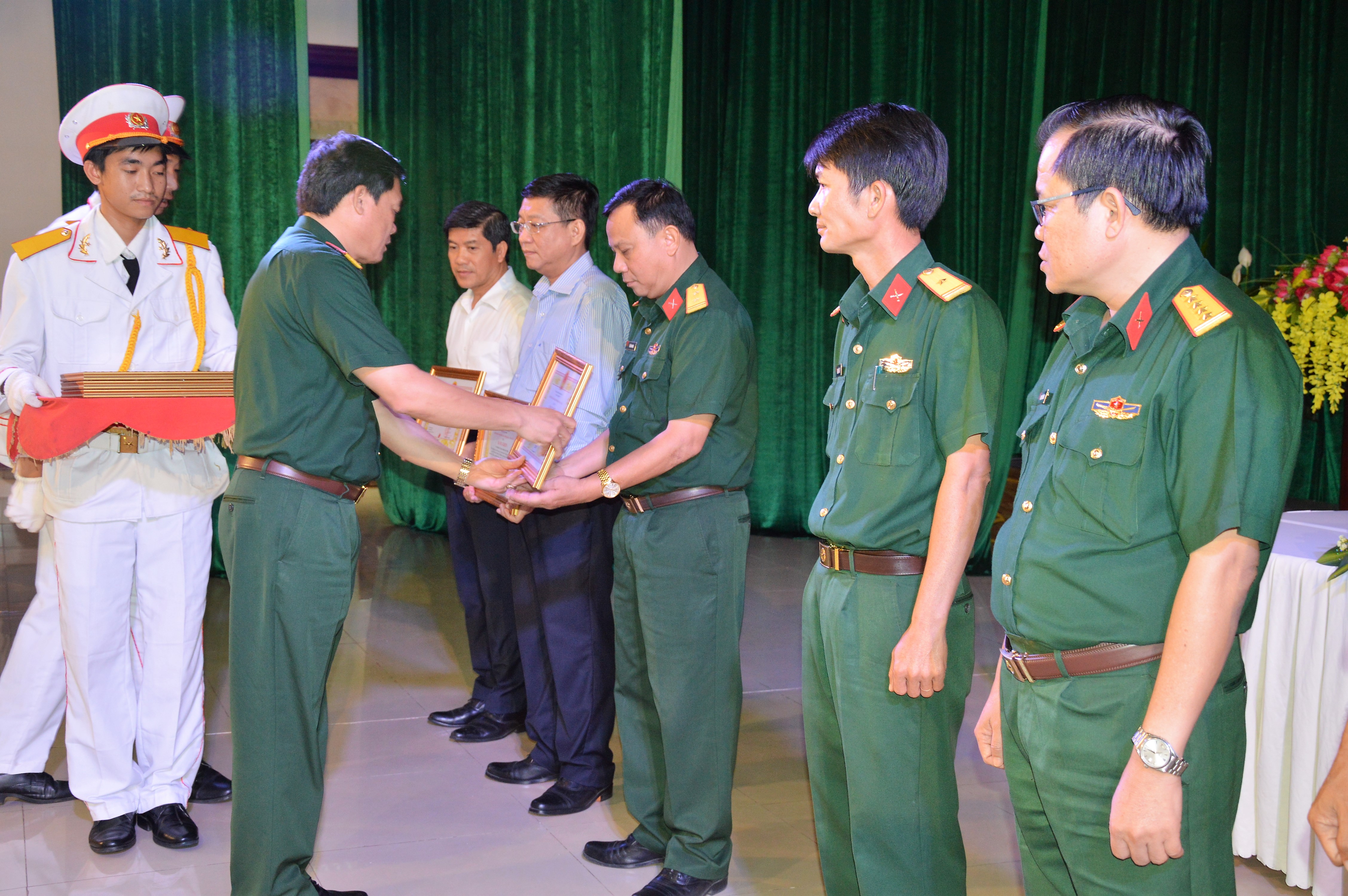 Đại tá Thái Văn Điền - Chính ủy Bộ CHQS tỉnh trao thưởng cho các tập thể, cá nhân tại hội nghị quân chính năm 2019.