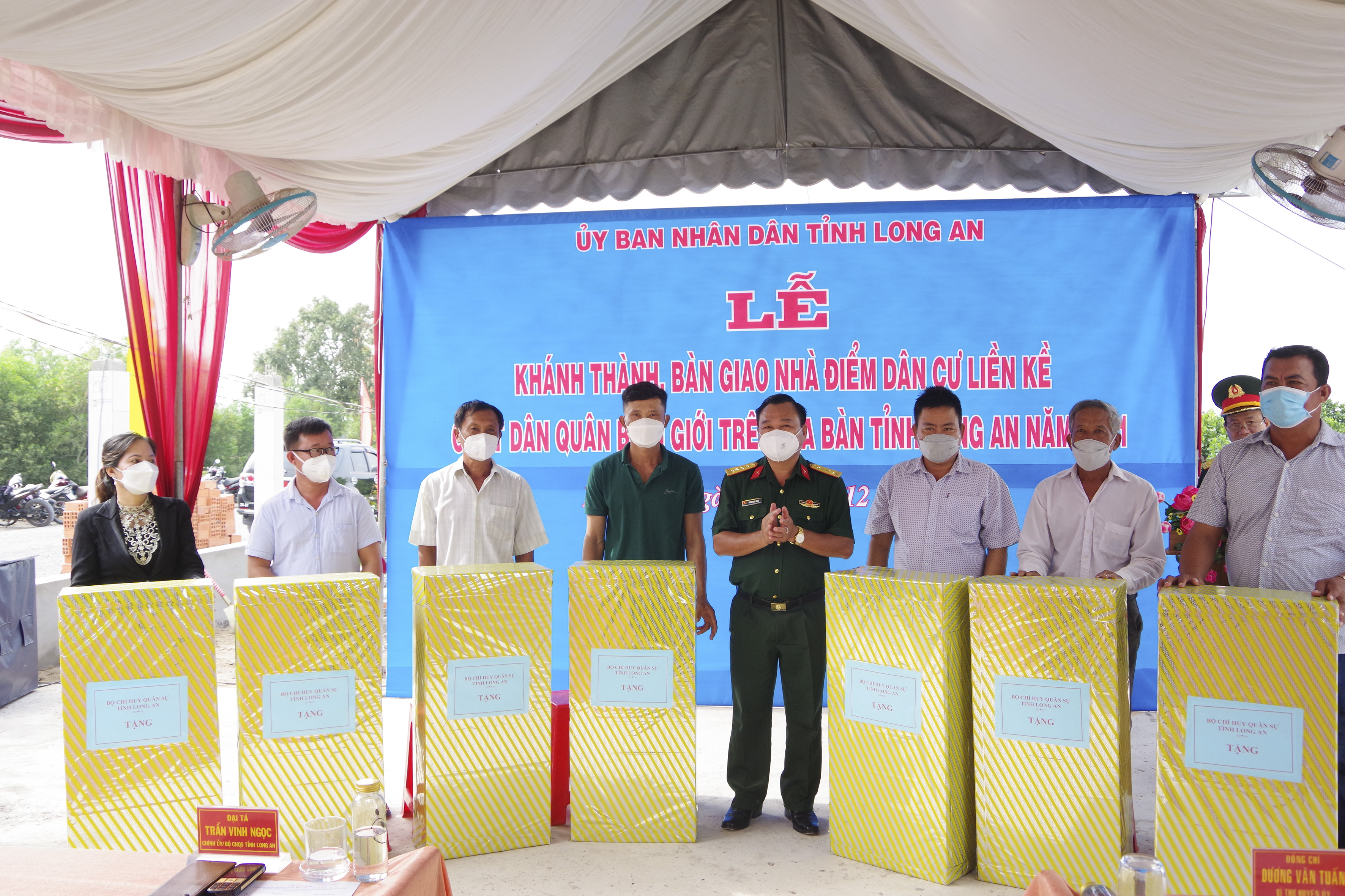 Phát biểu tại buổi lễ, Đại tá Trần Vinh Ngọc, Chính ủy Bộ CHQS tỉnh Long An chúc mừng các gia đình tại điểm dân cư liền kề có nhiều hạnh phúc và phát triển kinh tế bền vững. Đồng thời, trong thời gian tới, Bộ CHQS tỉnh sẽ tiếp tục phối hợp với các sở, ngành tỉnh tham mưu cho Tỉnh ủy, UBND tỉnh tiếp tục đầu tư bảo đảm kinh phí kết nối cơ sở hạ tầng điện, nước, các công trình phúc lợi xã hội với điểm dân cư liền kề, dạy nghề truyền thống, chuyển giao kỹ thuật, hỗ trợ chăn nuôi trồng trọt… để đảm bảo cuộc sống lâu dài cho nhân dân. Đồng chí Chính ủy Bộ CHQS tỉnh đề nghị, các hộ dân tiếp tục củng cố chỉnh trang nhà cửa, tích cực lao động sản xuất, phát triển kinh tế, đồng thời nâng cao tinh thần tự quản đường biên cột mốc, tạo sức mạnh đoàn kết, chung tay bảo vệ biên giới quốc gia.