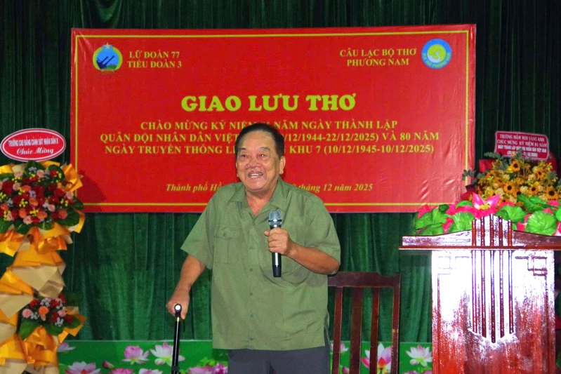 (QK7 Online) - Tối 20/12, Lữ đoàn 77 phối hợp Câu lạc bộ (CLB) Thơ Phương Nam tổ chức chương trình giao lưu thơ với chủ đề “Đất nước tình yêu và người lính phòng không”. Đây là hoạt động trong chuỗi hoạt động chào mừng kỷ niệm 81 năm Ngày thành lập Quân đội nhân dân Việt Nam (22/12/1944 - 22/12/2025), 36 năm Ngày hội quốc phòng toàn dân (22/12/1989 - 22/12/2025), 53 năm Chiến thắng “Hà Nội - Điện Biên Phủ trên không” (30/12/1972 - 30/12/2025).