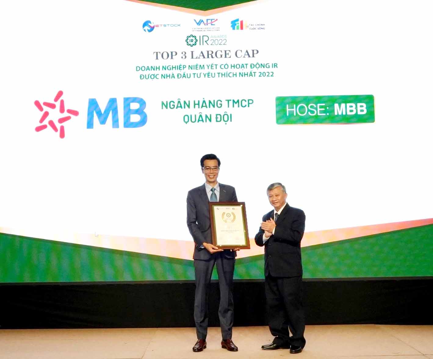 (QK7 Online) - Với những nỗ lực hoàn thiện, chuẩn hóa hoạt động IR (Investor Relations - Quan hệ nhà đầu tư), Ngân hàng TMCP Quân đội với mã cổ phiếu MBB vinh dự nằm trong top 3 doanh nghiệp niêm yết có vốn hóa lớn (Large Cap) được nhà đầu tư yêu thích nhất và top 4 doanh nghiệp niêm yết có vốn hóa lớn (Large Cap) được định chế tài chính đánh giá cao nhất.