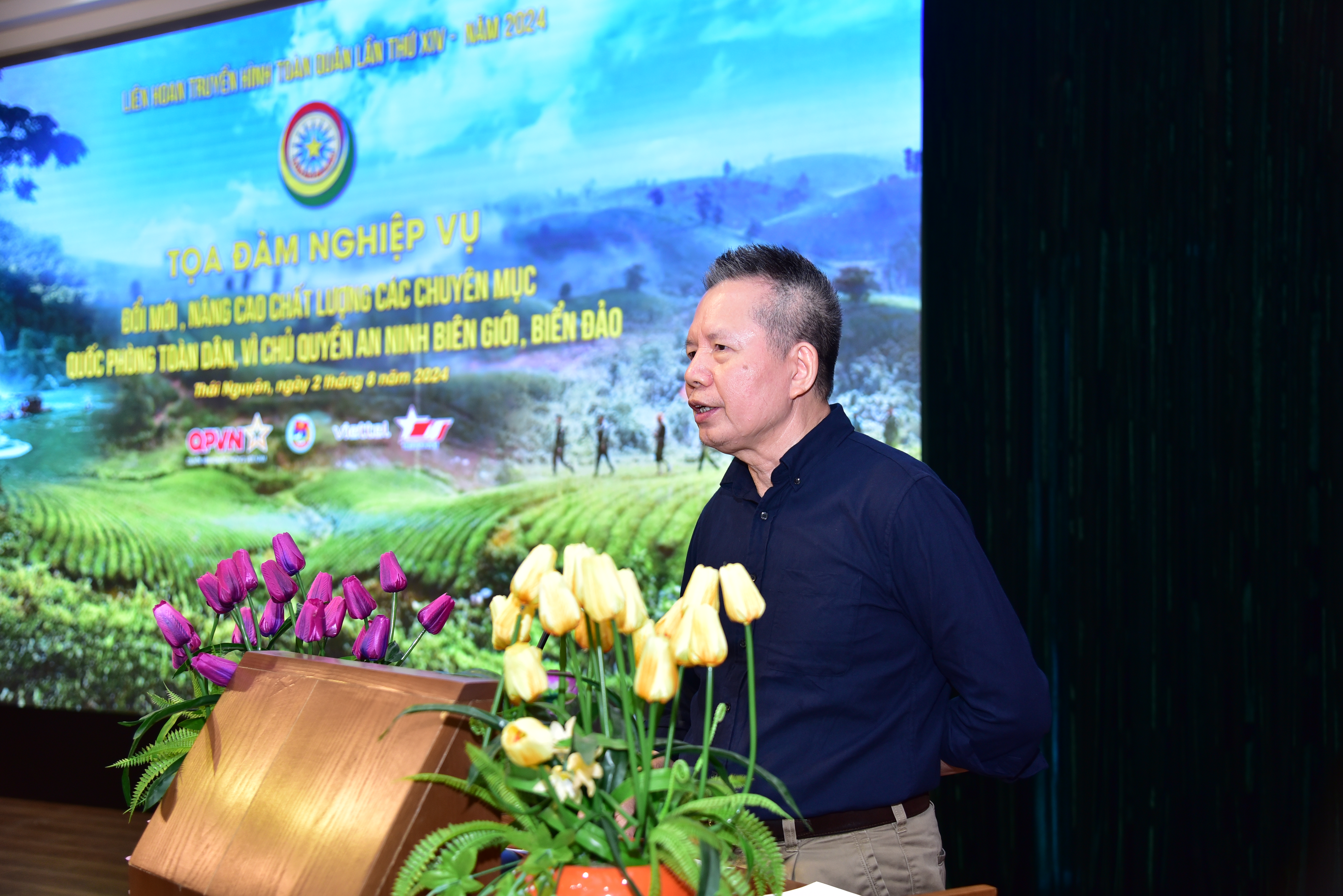 Thiếu tướng Nguyễn Hoài Nam, Nguyên Giám đốc Trung tâm PT-TH Quân đội trao đổi, chia sẻ tại buổi tọa đàm.