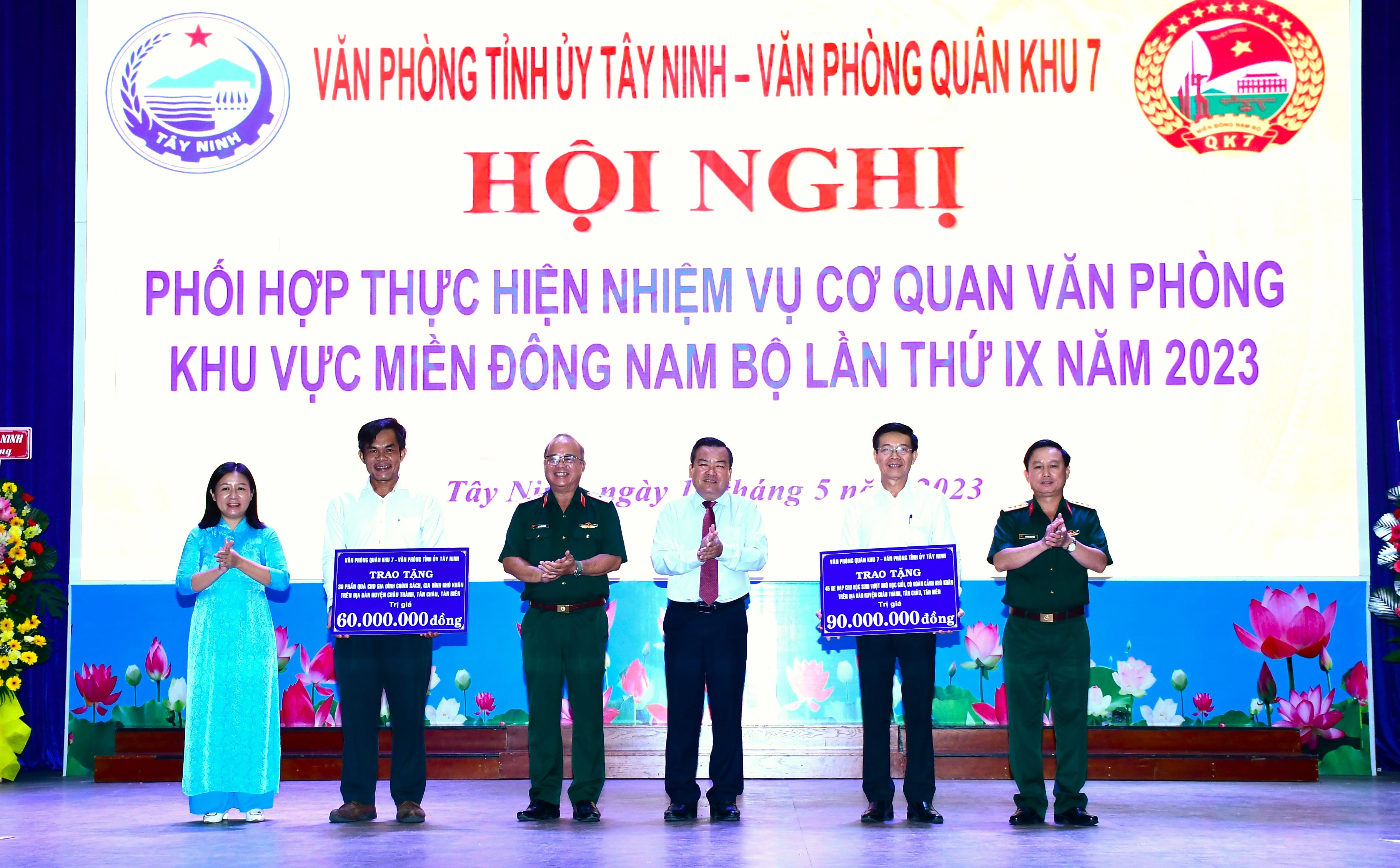 (QK7 Online) – Ngày 19/5, tại tỉnh Tây Ninh, Văn phòng Quân khu 7 và Văn phòng Tỉnh ủy Tây Ninh tổ chức hội nghị phối hợp thực hiện nhiệm vụ cơ quan Văn phòng khu vực miền Đông Nam Bộ lần thứ IX năm 2023. Dự, chỉ đạo hội nghị có Thiếu tướng Du Trường Giang, Ủy viên Thường vụ Đảng ủy, Phó Tư lệnh Quân khu 7; đồng chí Phạm Hùng Thái, Phó Bí thư Thường trực Tỉnh ủy, Trưởng đoàn Đại biểu Quốc hội tỉnh Tây Ninh.