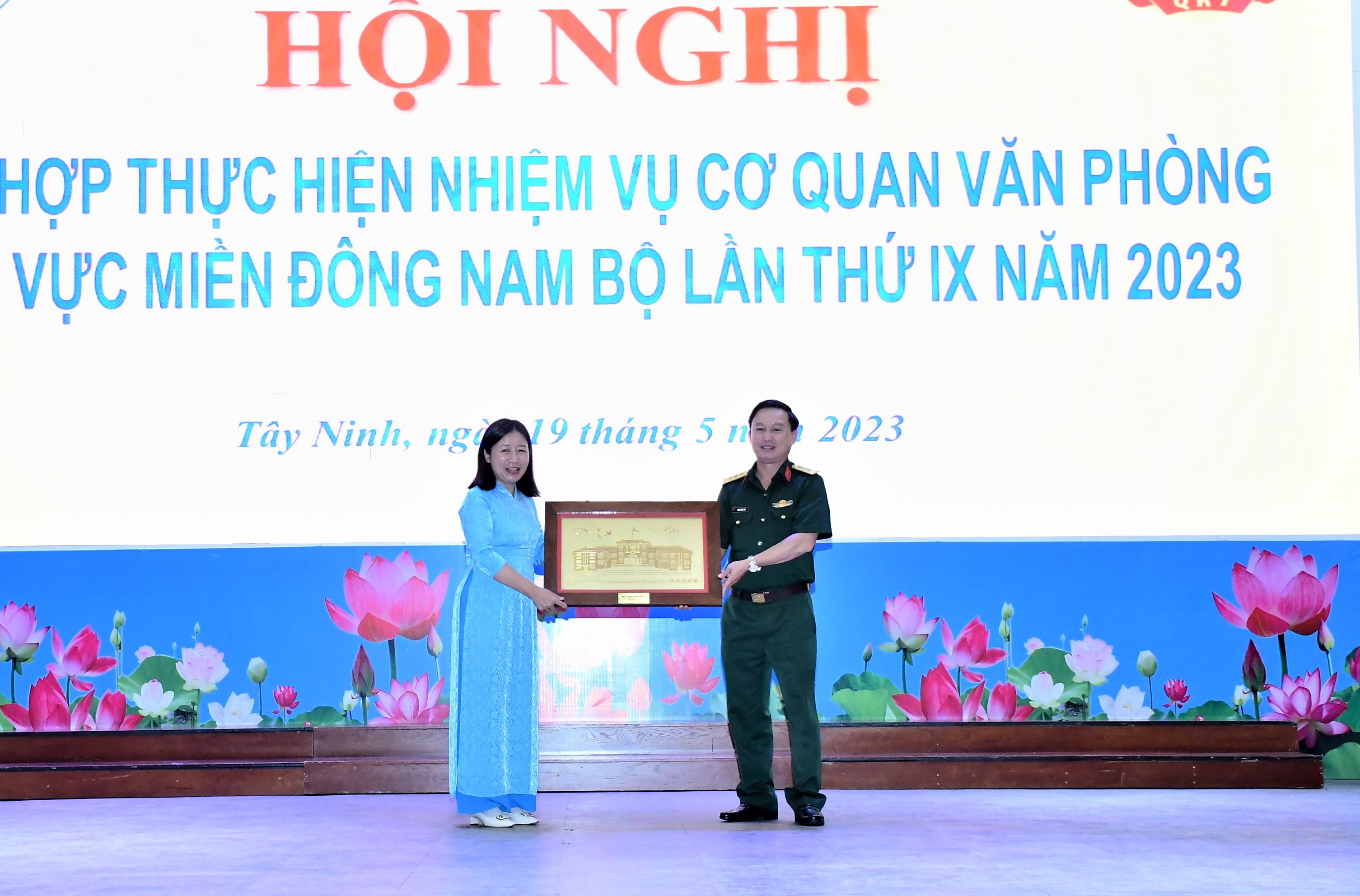 n phòng Quân khu 7 tặng quà lưu niệm Văn phòng Tỉnh ủy Tây Ninh, đơn vị đăng cai tổ chức hội nghị.