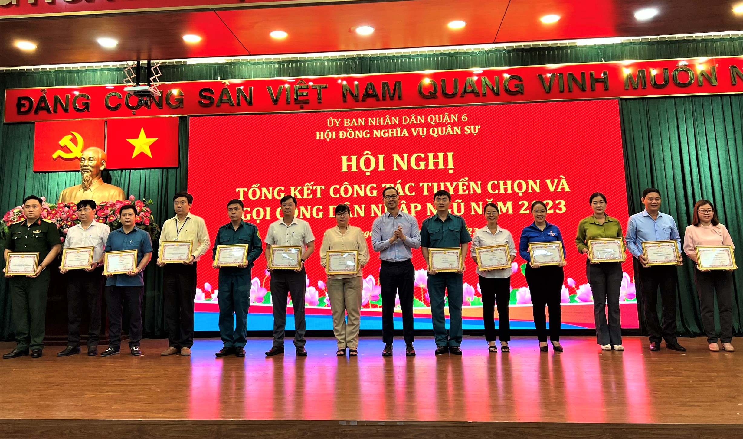 UBND Quận 6 tặng giấy khen cho 29 tập thể, 29 cá nhân và 17 gia đình tiêu biểu có thành tích xuất sắc trong công tác tuyển chọn và gọi công dân nhập ngũ năm 2023.